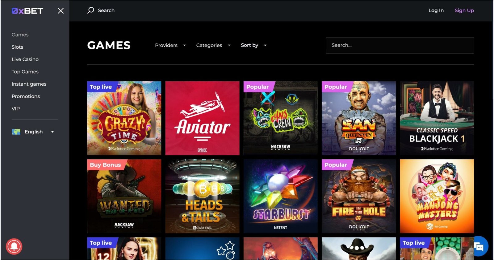 Software Providers Entertaining the Guests at 0x.bet Casino