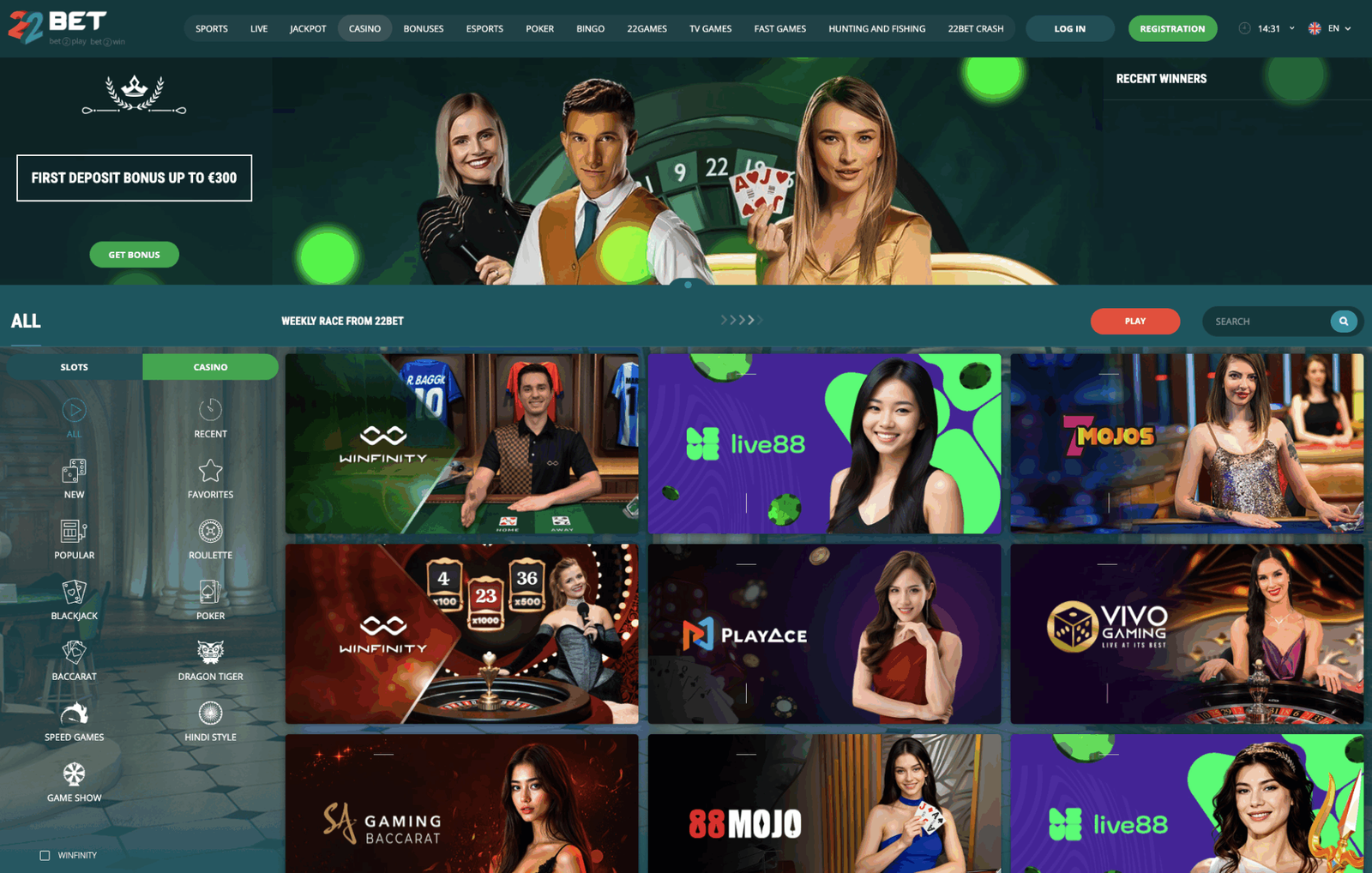 22Bet Casino Live Dealers & Slots