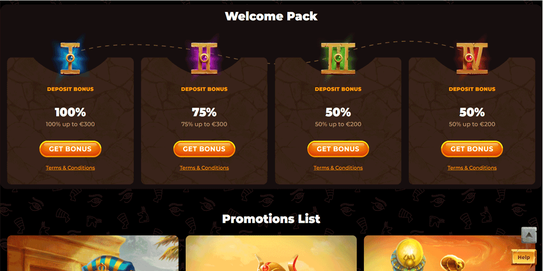 Every newly registered player at AmunRa Casino will get to receive a huge welcome bonus package that is worth 275% up to 1000 EUR in total! The generous welcome bonus package will be separated among the first four times you place a deposit at the casino. Your first deposit bonus will be 100% up to 300 EUR; your second deposit bonus will be 75% up to 300 EUR; your third deposit bonus will be 50% up to 200 EUR; and your fourth deposit bonus will be 50% up to 200 EUR.