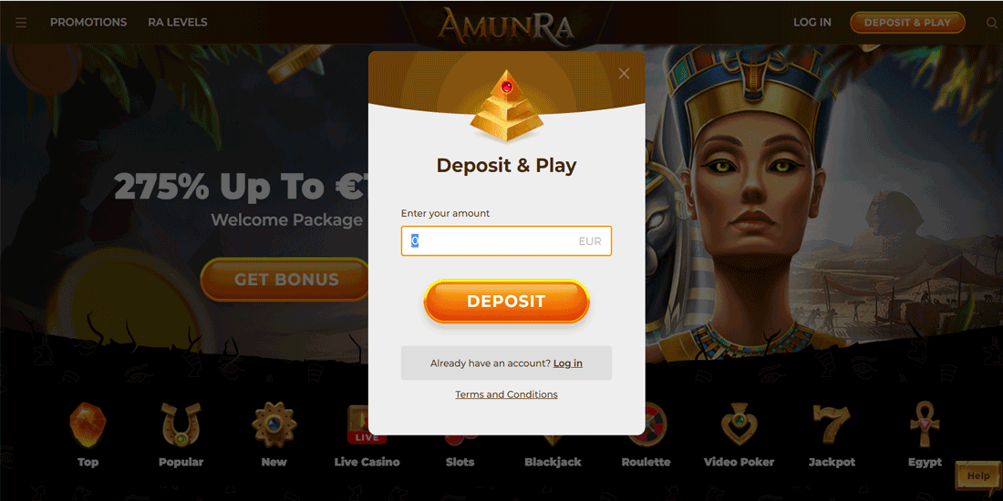 AmunRa Casino provides players with a smashing welcome bonus of 275% up to 1000 EUR!