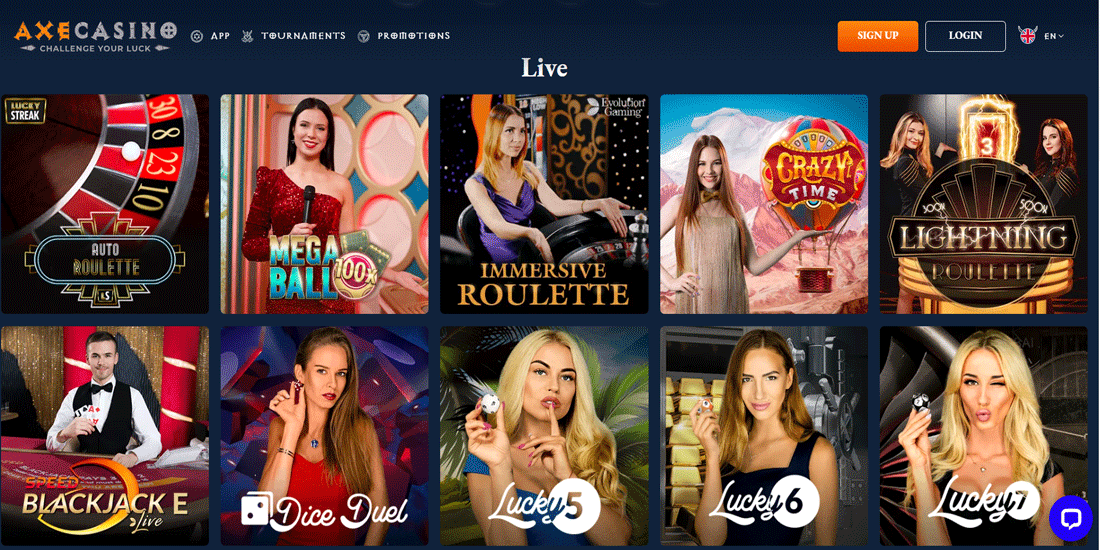 You will find a wide variety of classic and modern games like blackjack, roulette, baccarat, and many others, all of which are hosted by professional dealers who create a realistic casino experience from the comfort of your home. Additionally, the live casino games at Axe Casino are available 24/7, so you can join the action whenever you want.