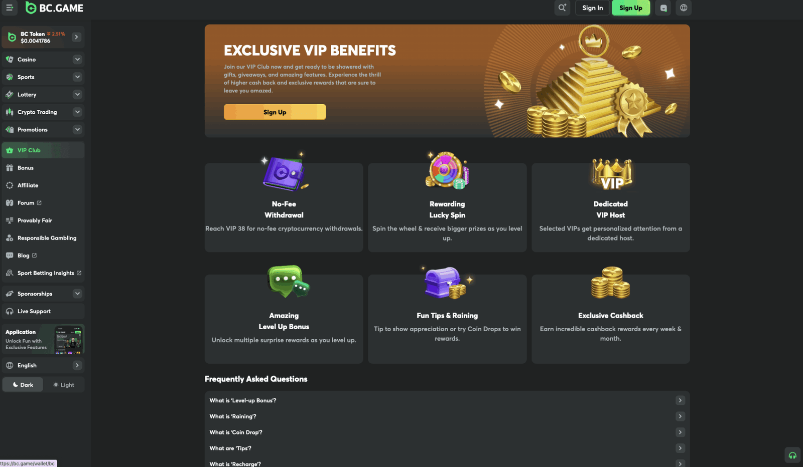 Whether you’re playing slots, tables, or sports, BC.Game Casino’s VIP Program ensures loyalty pays off with escalating benefits and a truly premium experience.