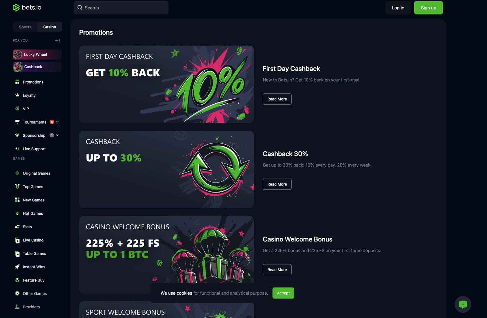 With fast-loading pages, crypto wallet integration, and straightforward account management, Bets.io Casino proves that design and usability go hand in hand, offering players an efficient and enjoyable environment.