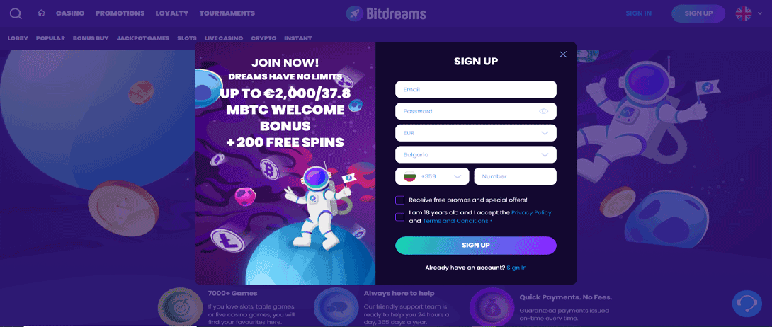BitDreams Casino has amazing casino features to make your stay on the platform pleasant and unforgettable. Besides its large collection of 7000+ casino games, the venue offers issue-free navigation and a fast-paced site. Its compatible with mobile phones and hand-held devices has superb customer service and supports multiple language options. It is held by the amazing casino owner Hollycorn N.V.
