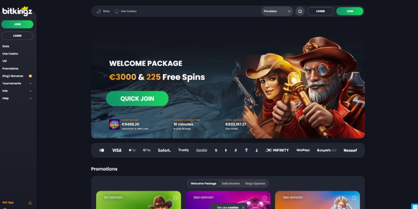 Get ready to be welcomed with open arms and lucrative rewards! With a generous welcome bonus package totaling €3000 and 225 free spins, your journey at BitKingz Casino begins on a high note.