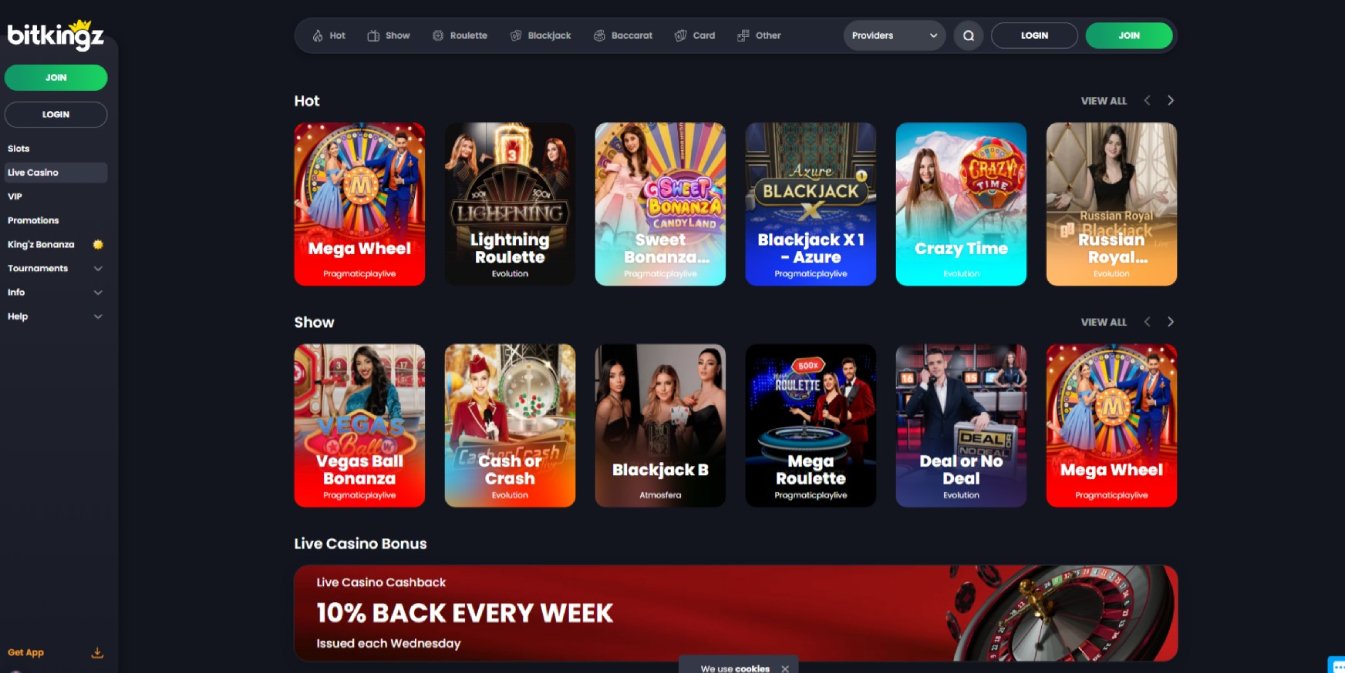 Players are treated to a variety of classic casino games and their exciting variations on Bitkingz Casino’s huge live casino game catalog. Whether you are a fan of Blackjack, Roulette, Poker, or other live casino games, Bitkingz Casino won’t disappoint you with its full HD streams, splendid graphics, and wonderful features.