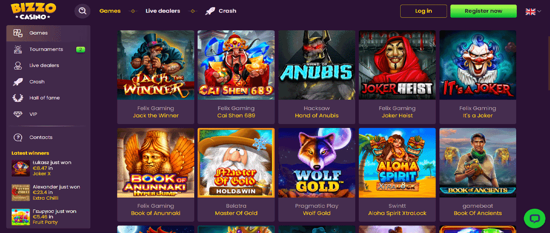 Bizzo Casino has a huge collection of games from many famous software producers.