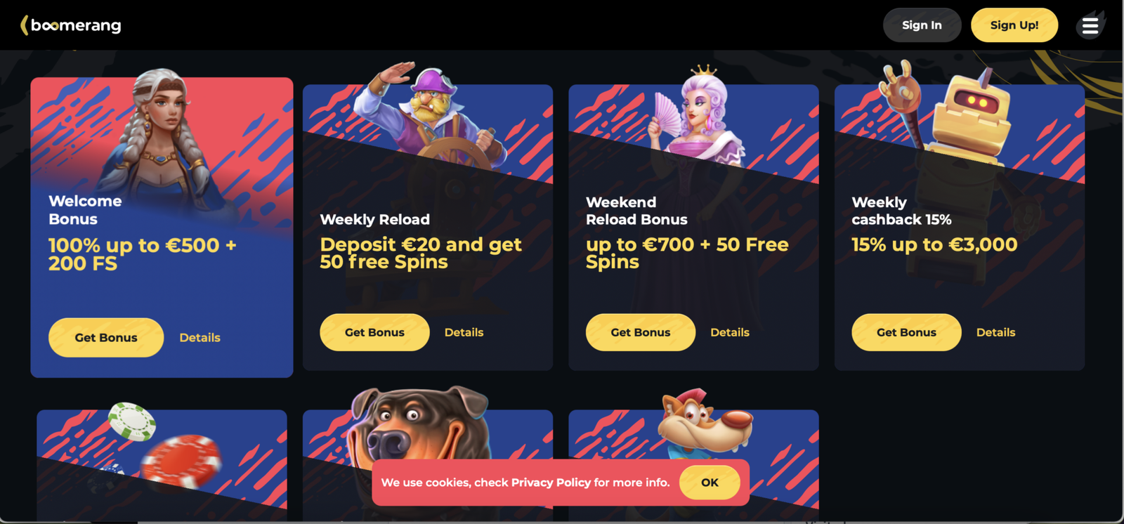 Boomerang Casino offers an array of enticing bonuses to enhance the gaming experience. New players are welcomed with a generous welcome bonus, often accompanied by free spins. The casino also runs regular promotions such as cashback offers, tournaments, and reload bonuses to keep the excitement going. With its diverse range of bonuses, Boomerang Casino ensures players have ample opportunities to maximize their winnings.