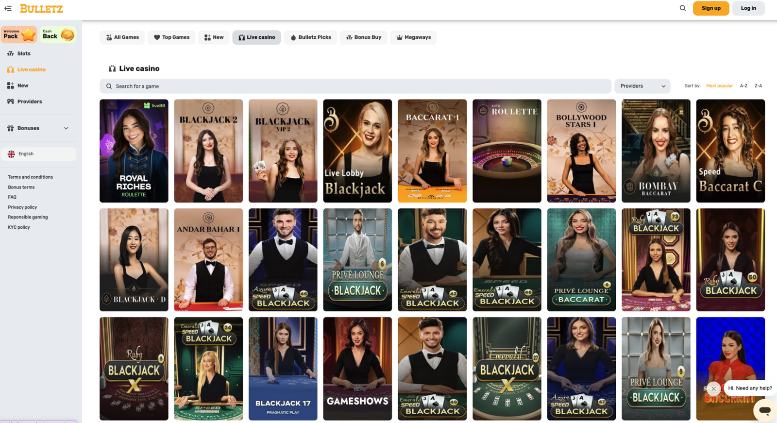 The live casino interface is user-friendly, allowing players to filter games by provider, popularity, or alphabetical order, ensuring easy navigation to preferred games . With high-definition streaming and seamless gameplay, Bulletz Casino ensures that the live gaming experience is both authentic and enjoyable.