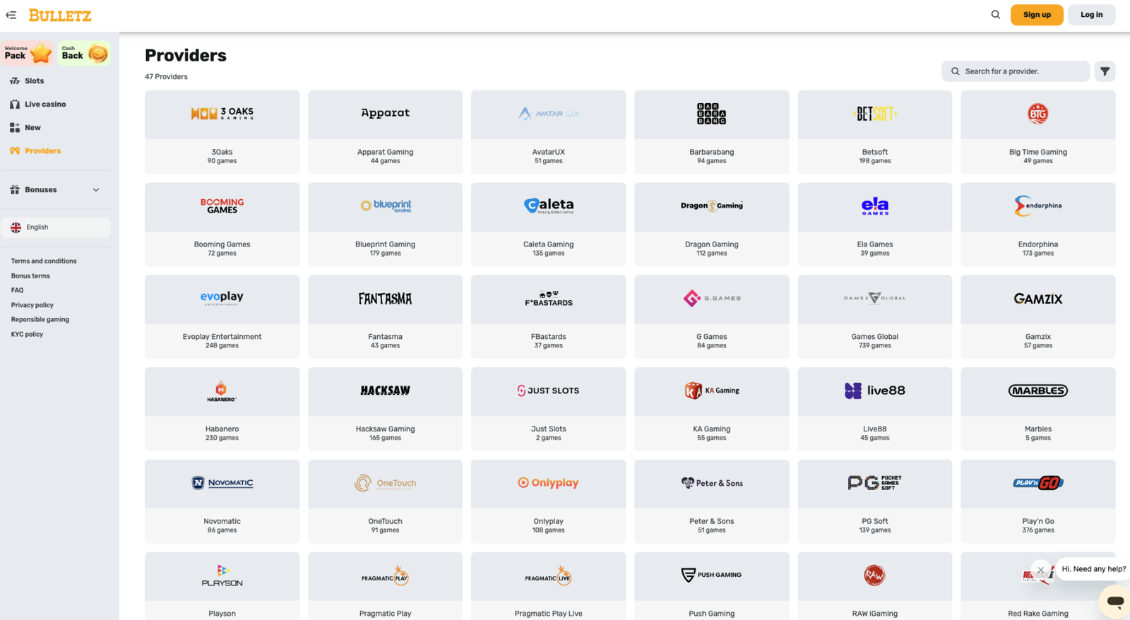 Bulletz Casino truly shines when it comes to its impressive lineup of gaming providers. With partnerships across some of the most respected names in the industry, the casino offers players a rich and varied gaming experience. From powerhouse developers like NetEnt, Pragmatic Play, and Play’n GO to innovative studios such as Nolimit City, Hacksaw Gaming, and Push Gaming, Bulletz Casino ensures top-tier game quality and variety.