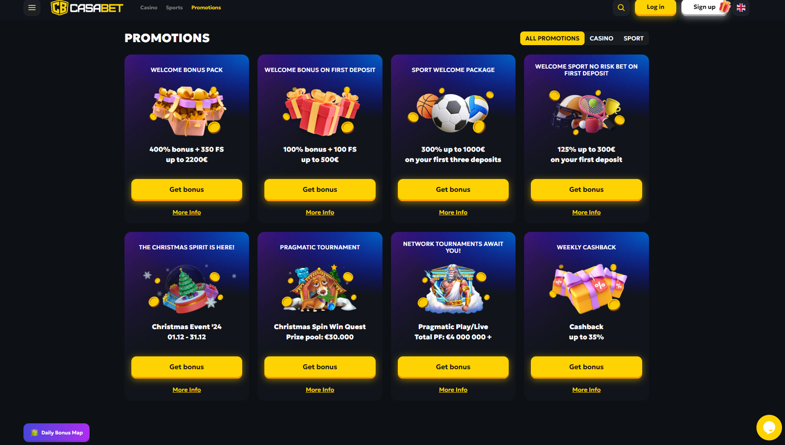 CasaBet Casino keeps its players engaged and rewarded through an array of enticing promotions. The standout welcome bonus offers an impressive 400% match up to €2,200, complemented by 350 free spins, giving new players a generous start. Daily rewards are crafted to align with player activity, featuring dynamic bonuses through the Daily Bonus Map. VIP members enjoy exclusive benefits such as weekly cashback, free spins, and tailored promotions, enhancing the overall experience for loyal players. Regular tournaments in both slots and live casino games add excitement, offering substantial prize pools that appeal to competitive spirits. Players using cryptocurrencies like Bitcoin or Ethereum can access additional bonuses, highlighting CasaBet’s dedication to catering to modern payment preferences. Seasonal promotions tied to holidays and special events further enrich the gaming journey. All these promotions come with terms and conditions, including wagering requirements, ensuring fairness and transparency for every participant.