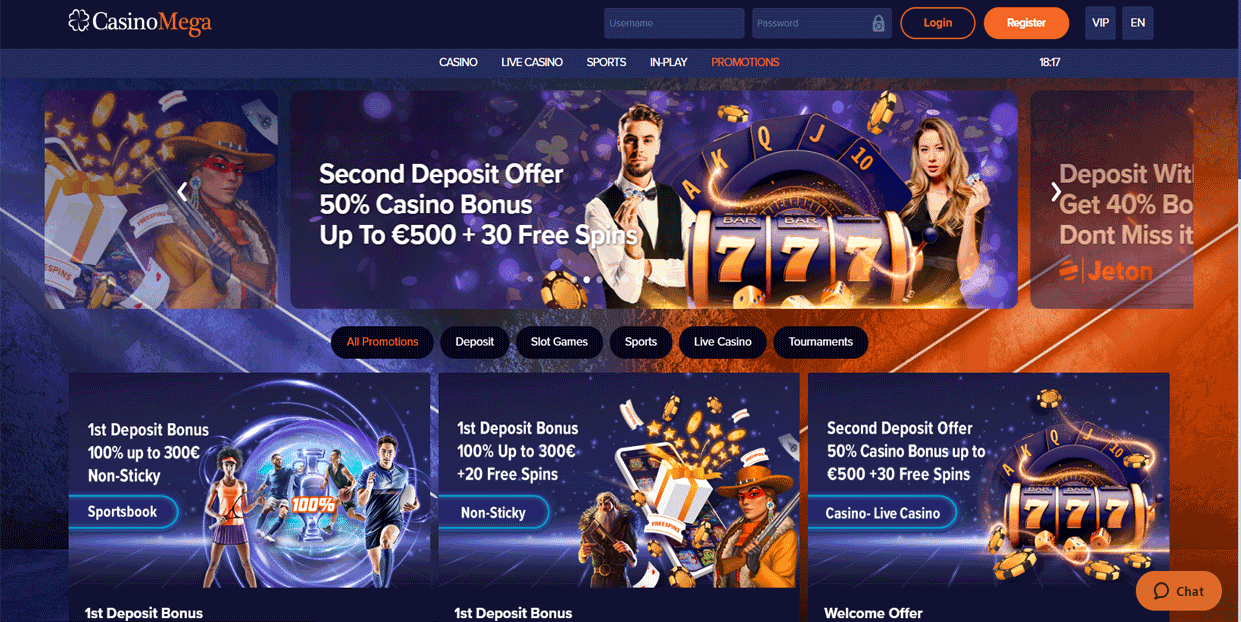 CasinoMega entices both new and loyal players with an array of promotions designed to enhance the gaming experience. For newcomers, the platform rolls out the red carpet with a welcome bonus offering up to €500 and 100 free spins, generously spread across the initial two deposits and complemented by 100 free spins on the popular Starburst slot.