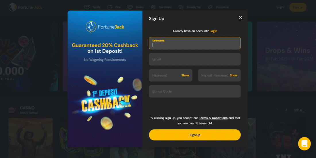 After reading this precisely prepared full detailed review of FortuneJack Casino, we are 100% sure that you can’t wait to hit the playing button of the startling games that it provides you with! But in order to start gambling and benefit from the huge bonus offers that the casino supplies you with, you have to register an account. All you need to do is provide the casino with your personal data and identity documents.