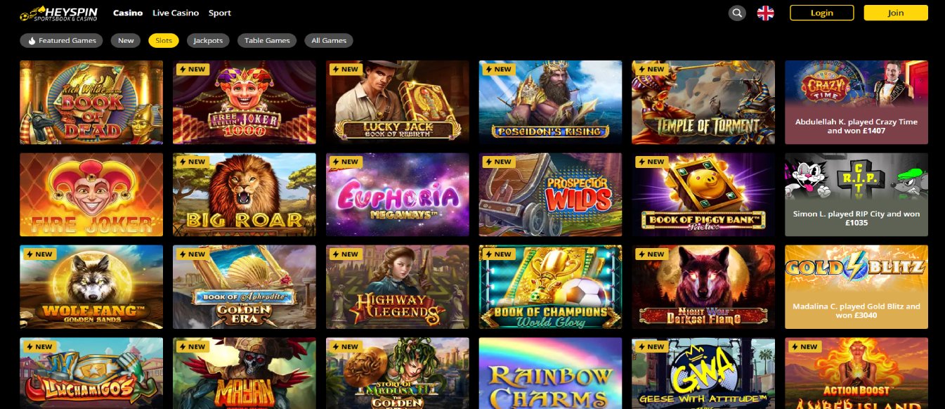 HeySpin Casino – A Look at the Slot and Table Game Menu