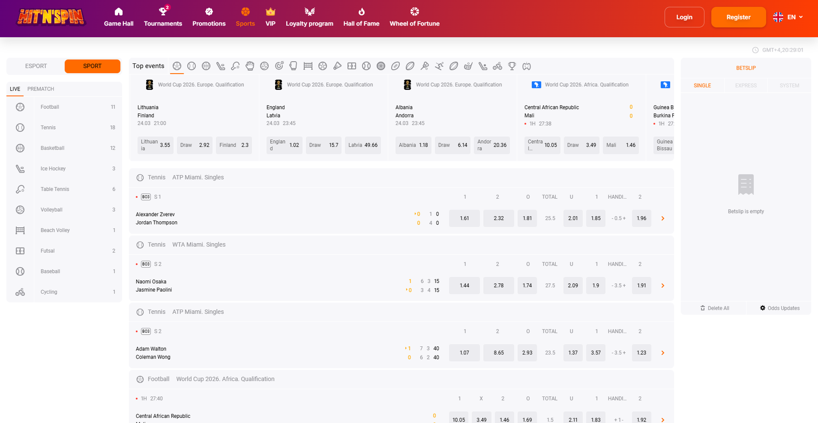 Players at Hit N Spin Casino can easily navigate between live events and pre-match betting options, taking advantage of competitive odds and varied bet types, including singles, accumulators, and in-play bets. The live betting section stands out, offering real-time action complemented by updated statistics and interactive graphics that elevate the excitement of every wager.