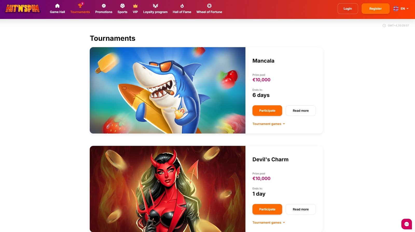 While specific details about current tournaments are not available in the provided sources, Hit N Spin Casino has previously featured events like the “Hot Slots Tournament” with a €5,000 prize pool. For the most up-to-date information on ongoing and upcoming tournaments, players are encouraged to visit the Tournaments section on the Hit N Spin Casino website.