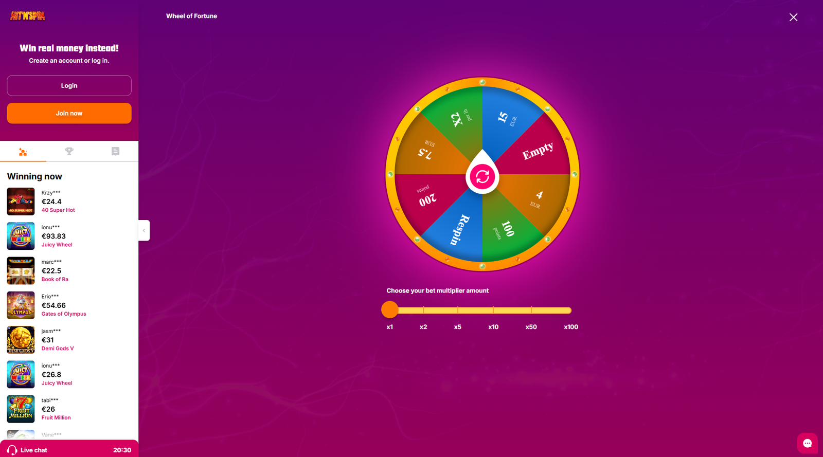 Hit N Spin current Tournaments