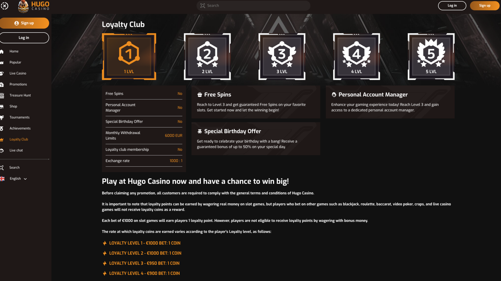 Yes, Hugo Casino has a tiered loyalty program with exclusive perks, higher withdrawal limits, and custom rewards for VIPs.