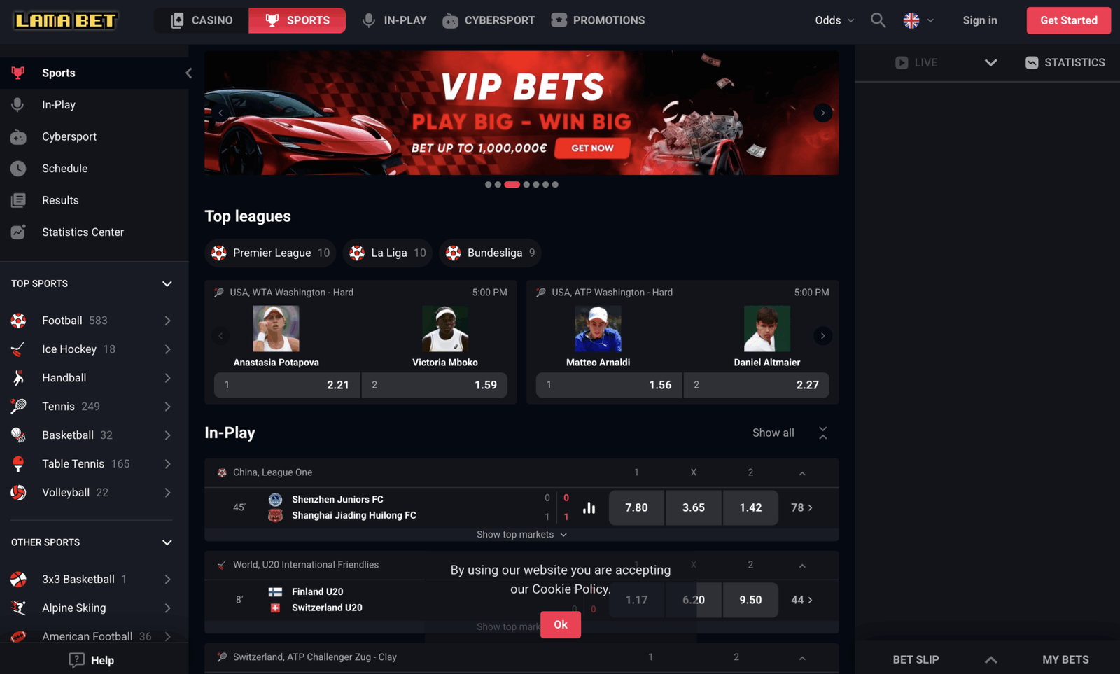 On mobile, Lamabet supports in-play betting across nearly 100 live events daily, including football, tennis, cricket, ice hockey, plus esports like LoL and CS2. The cash-out tool and European odds format are fully integrated, though live video streaming remains somewhat limited. Betting limits are flexible, with minimum stakes as low as €0.01—ideal for casual users and high rollers alike.