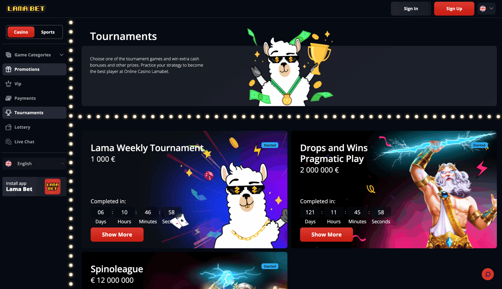Absolutely—Lamabet hosts daily and weekly tournaments with cash prizes, free spins, and leaderboard rewards. Drops & Wins and spin-based competitions are especially popular. Entry is often free for real-money players.