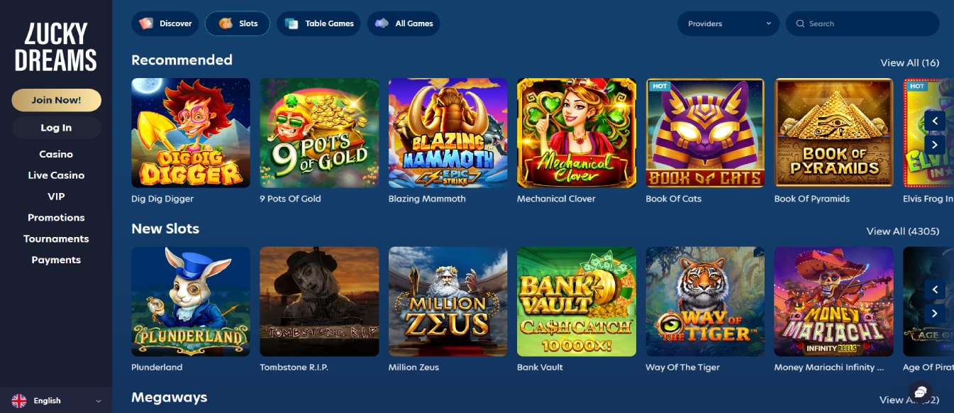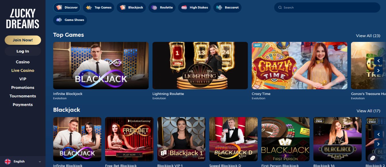 Lucky Dreams Casino offers an array of enticing features, ensuring an immersive and enjoyable gaming experience. With a captivating and user-friendly interface, navigating the extensive game selection is effortless. Players can enjoy a diverse range of games including slots, table games, live dealer options, and more, catering to every preference.