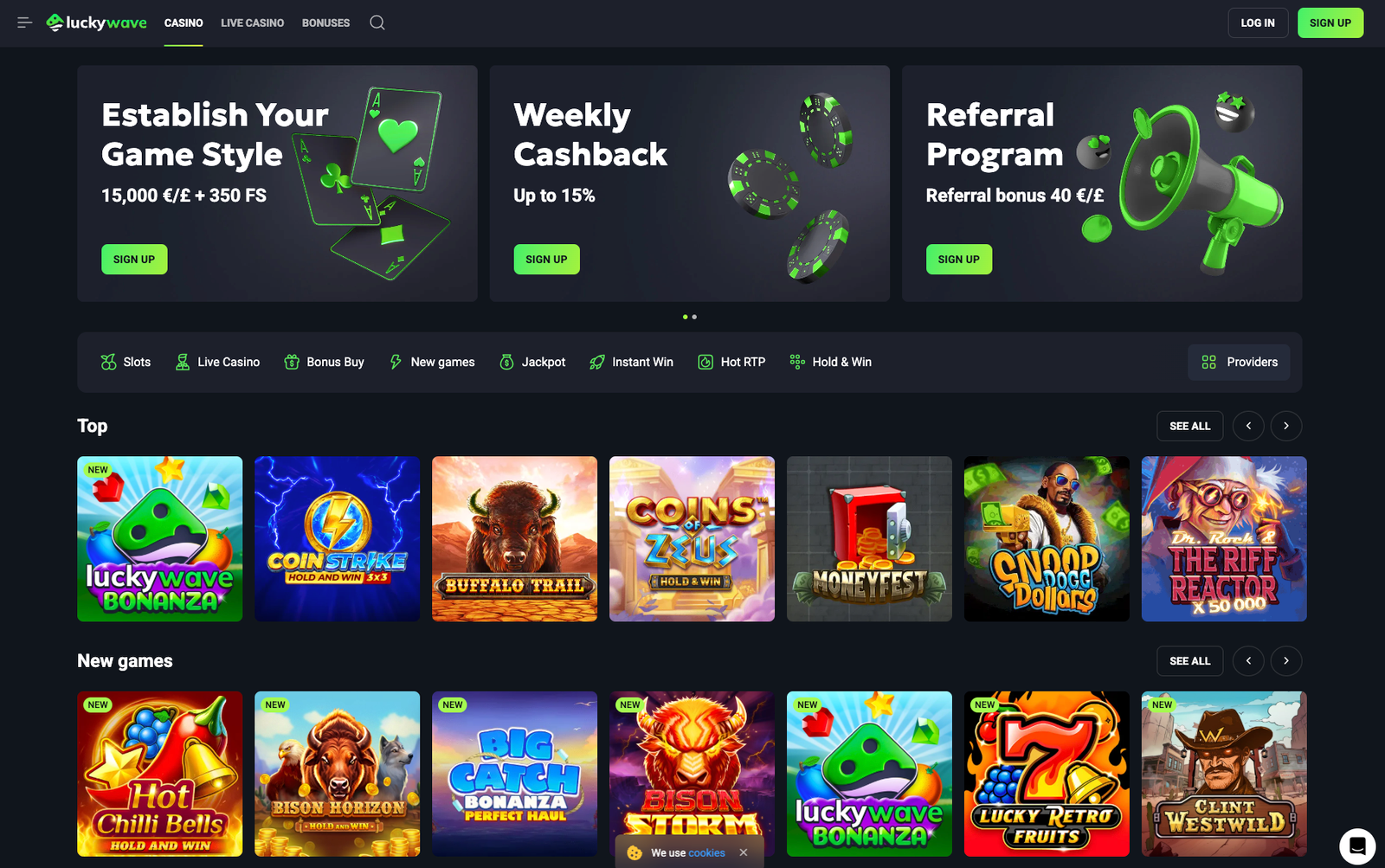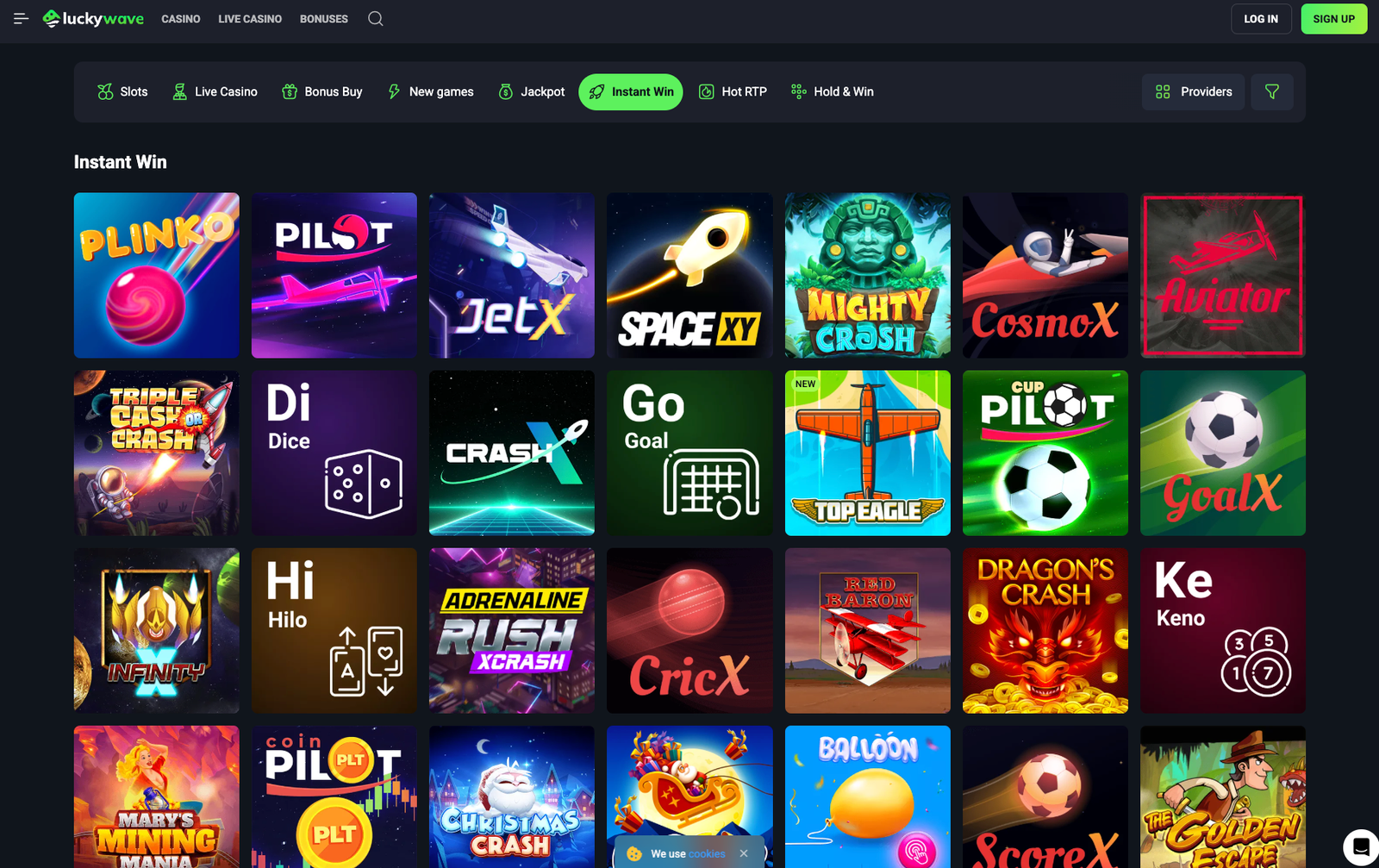 Lucky Wave offers a diverse game collection featuring over 2,000 titles from top software providers. Players can enjoy a wide array of slots, including popular games like “Big Bass Splash” and “Buffalo Trail”. The platform also boasts an extensive live casino section with games such as “Crazy Time” and “PowerUP Roulette”, providing an immersive gaming experience. Additionally, LuckyWave.com offers instant win games and bonus buy options, catering to various player preferences.