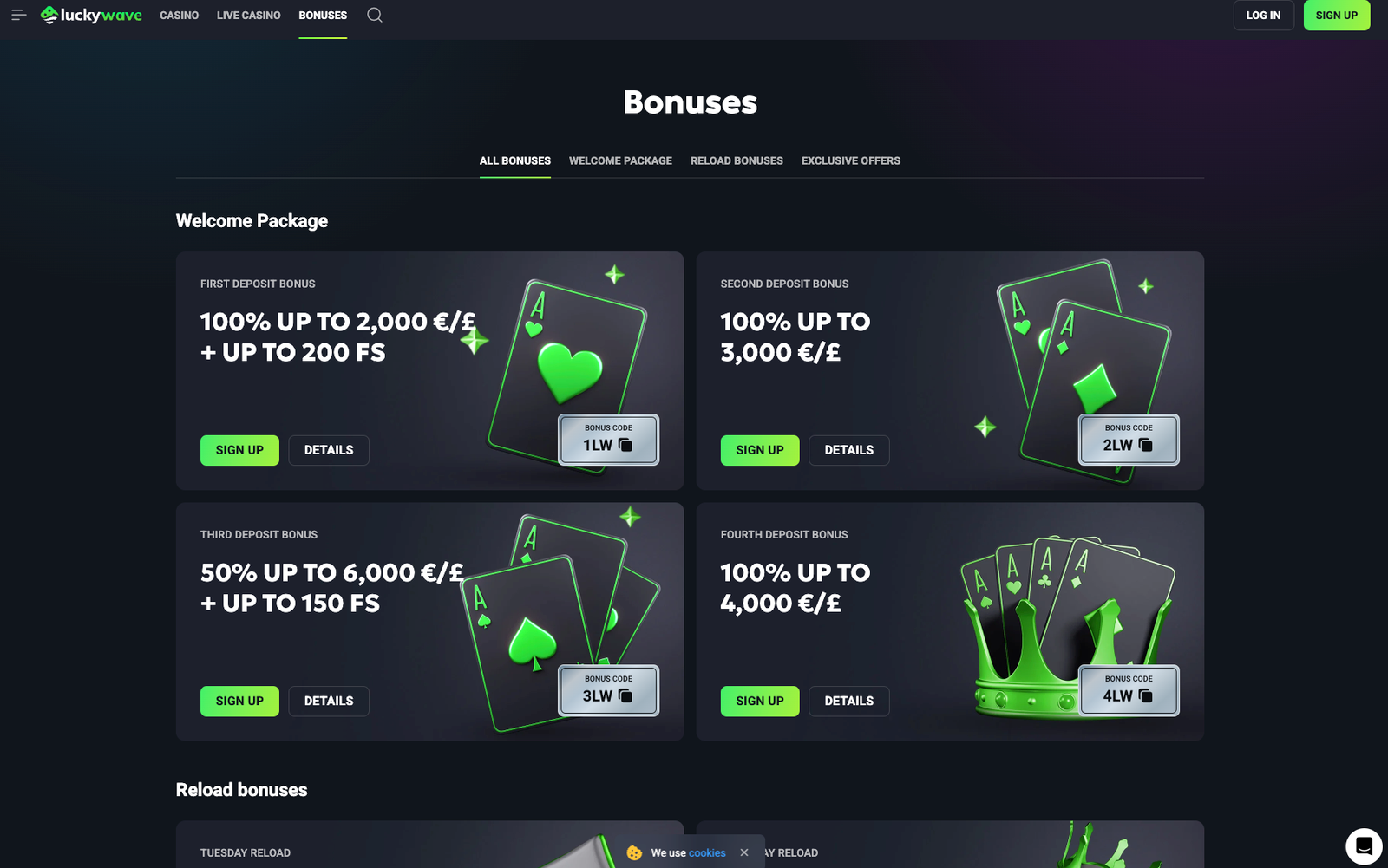 To keep the excitement ongoing, Lucky Wave Casino provides regular reload bonuses:
