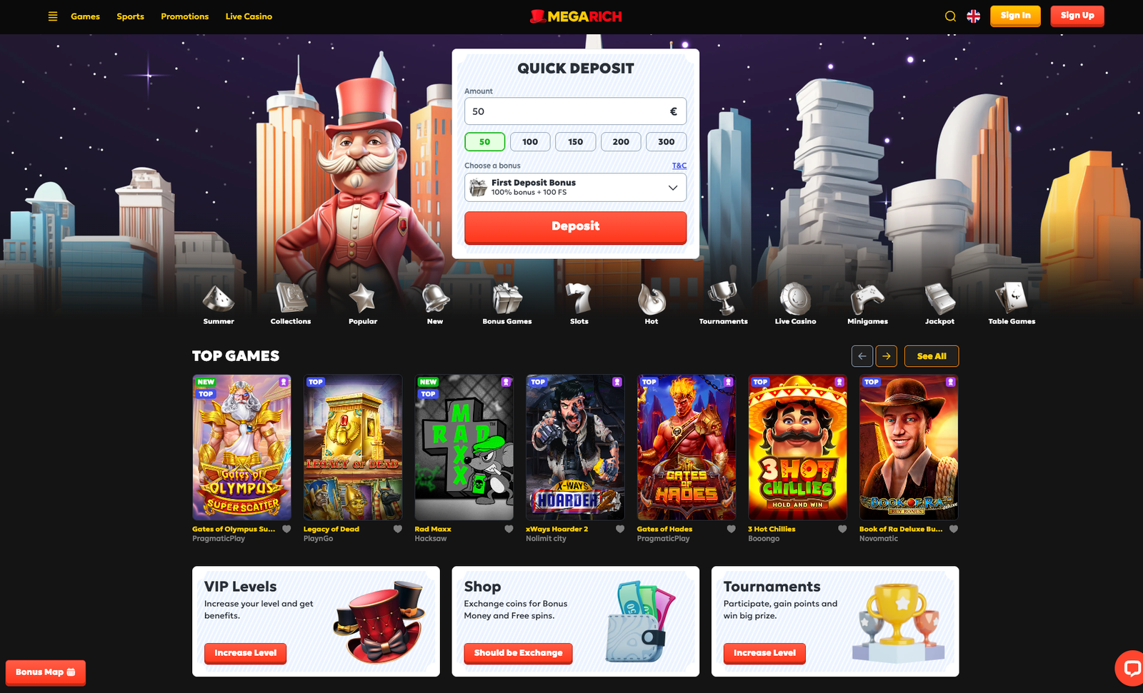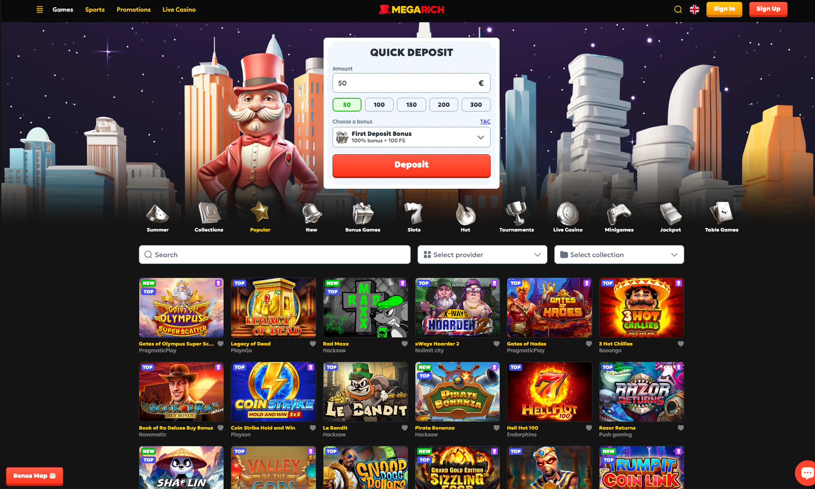Beyond traditional slot machines, MegaRich Casino enhances player engagement with engaging minigames like Mines Dare 2 Win, Big Bass Crash, Plinko, Aviatrix, and Turbo Mines . The site’s intuitive filtering and search tools make it easy to discover titles sorted by provider, theme, volatility, or RTP.
