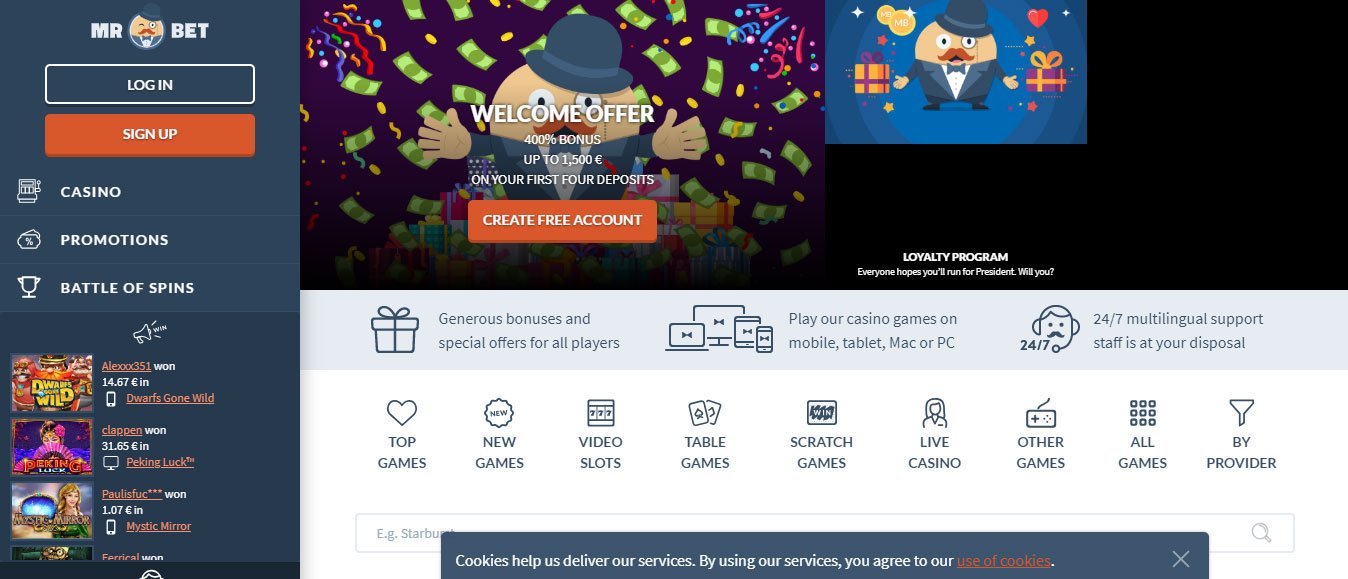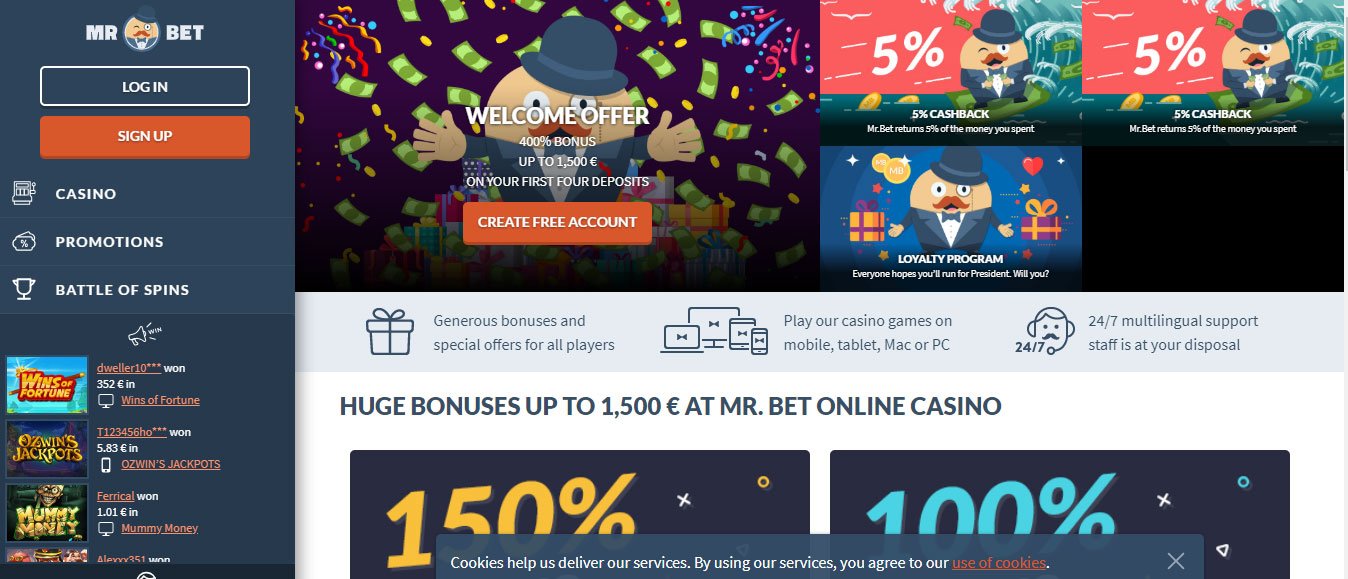 Mr.Bet Саѕіnо Wеlсоmе Воnuѕ: 400% uр tо €1500