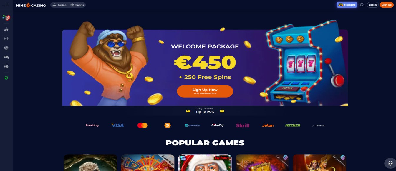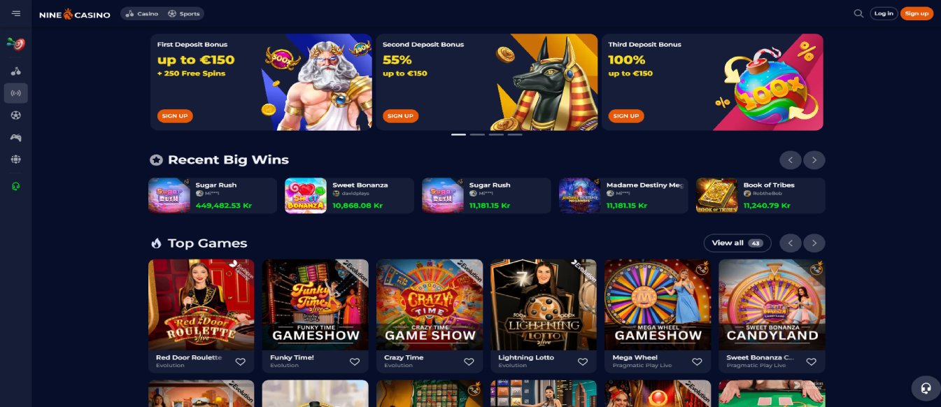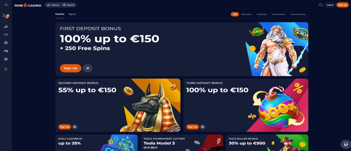 Nine Casino boasts a diverse game selection, including slots, table games, live dealer options, and sports betting.