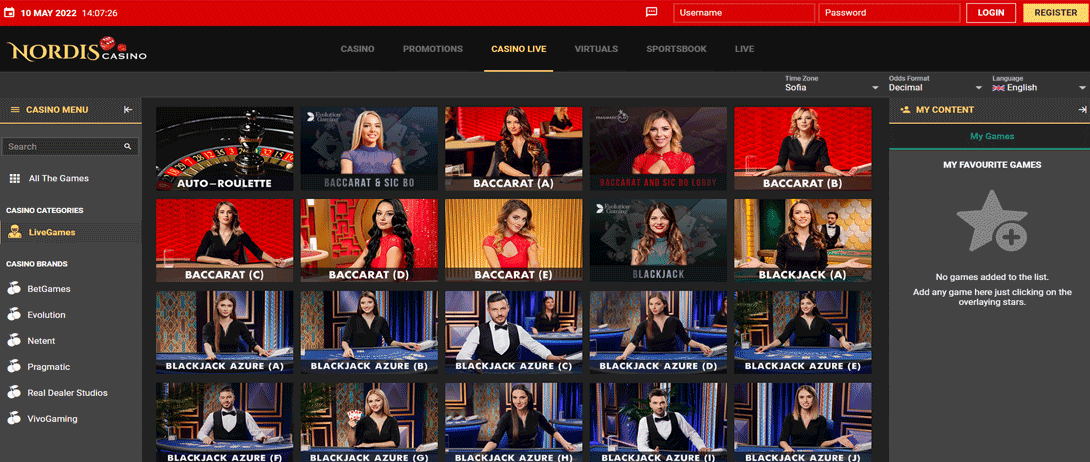 Live Casino fans are not left behind on this platform. Here you will find a carefully selected assortment of live casino titles including all the popular casino games such as Live Baccarat, Live Roulette, Live Poker, and Live Blackjack. Nordis Casino also hosts a variety of Live Game Shows such as Deal or no Deal, Mega Ball, Lucky 6, Crazy Time, and more!