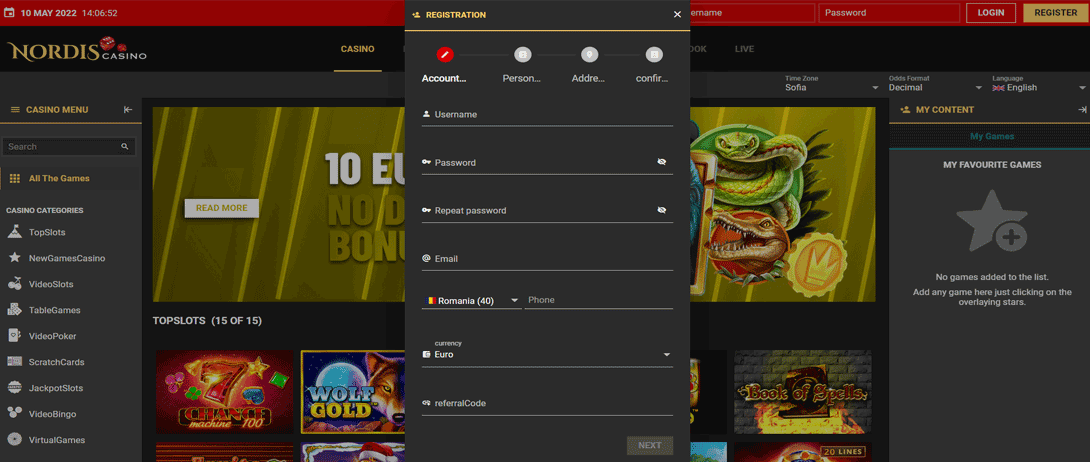 If you have ever completed registration at an online casino before, you should have no issue registering at Nordis Casino. It will require a bit of personal information, such as your driver’s license, your ID, and recent bank transfer documents so that casino staff can verify your name and address, as well as if you are eligible to gamble online. After a short verification period, you will then be able to jump right in and start playing to your heart’s contempt!