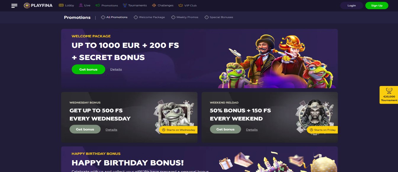 One of the most exciting tournaments available at Playfina is the €10,000,000 Giveaway, which gives players the chance to win a share of this enormous prize pool. In addition to this, Playfina also offers regular tournaments with prizes of up to 50,000 free spins, giving players the chance to enjoy their favorite slots for longer without risking their own funds.