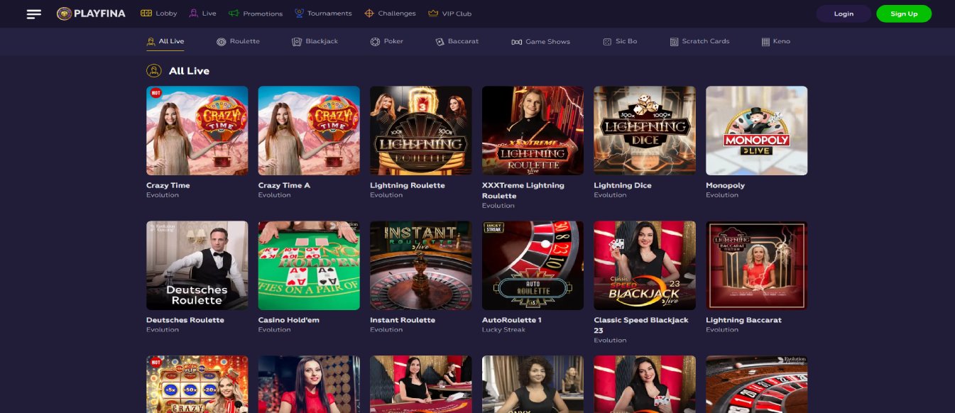 Live Casino at Playfina