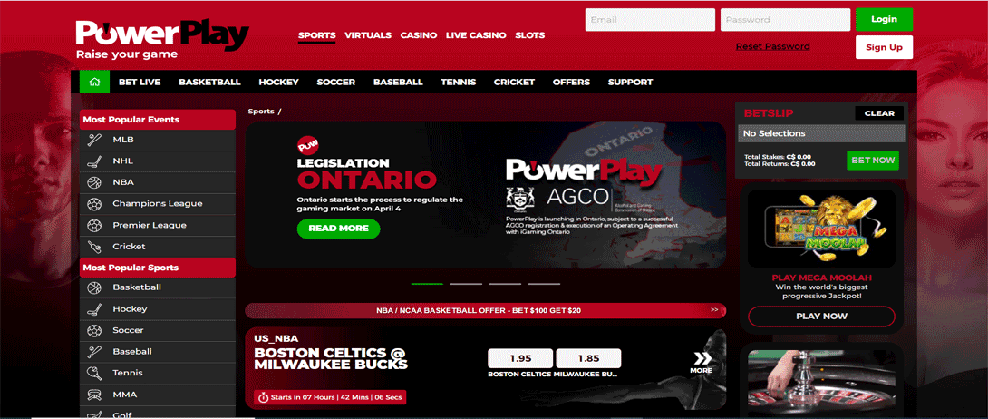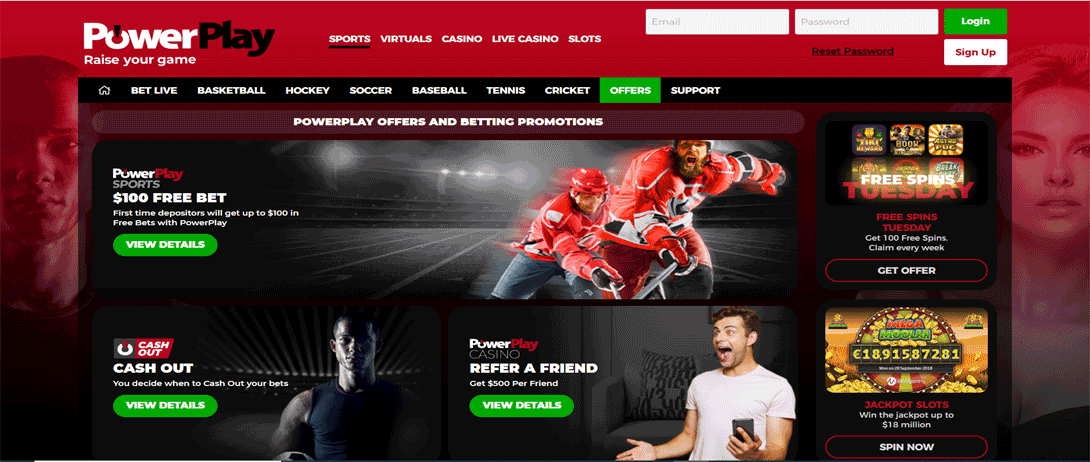 PowerPlay Casino relies on innovative features and technological advancements in order to pique the interest of casino enthusiasts around the world. The first thing that will leave you with a positive impression is its excellent red and black interface. The simple and elegant layout allows casino players to easily navigate through the platform and discover the hottest casino products. The motto of Power Play Casino is ‘dare to dream big’. This is because the online casino operator wants to provoke your competitive spirit and positive attitude to trigger colossal winnings. Once you load the meticulously designed platform of the casino, you will find tabs that will direct you to live bets, casino games, basketball, hockey, soccer, baseball, tennis and cricket opportunities as well as to the current offers.