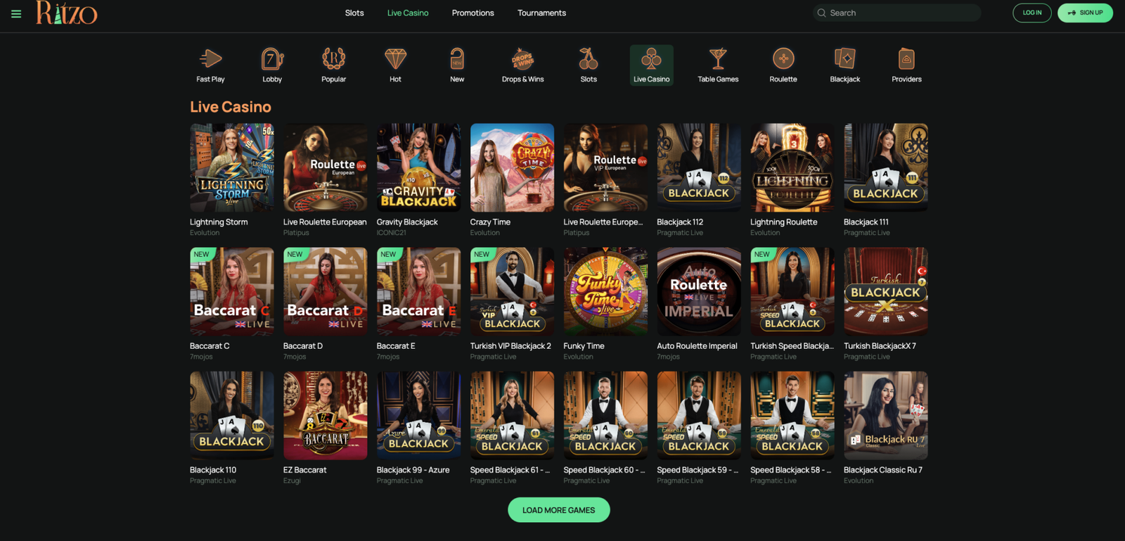 Table Games: For enthusiasts of traditional casino games, Ritzo provides numerous options such as blackjack, roulette, baccarat, and poker, each available in multiple variations to cater to different player preferences.