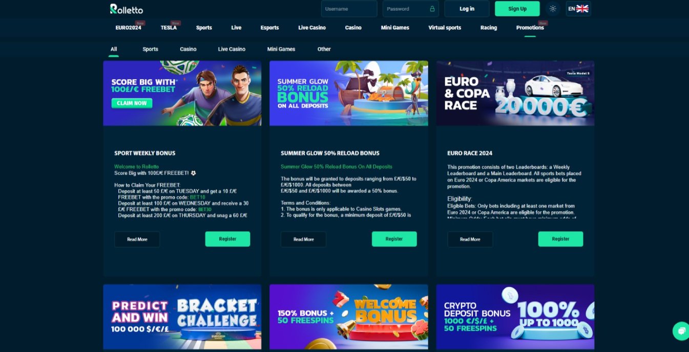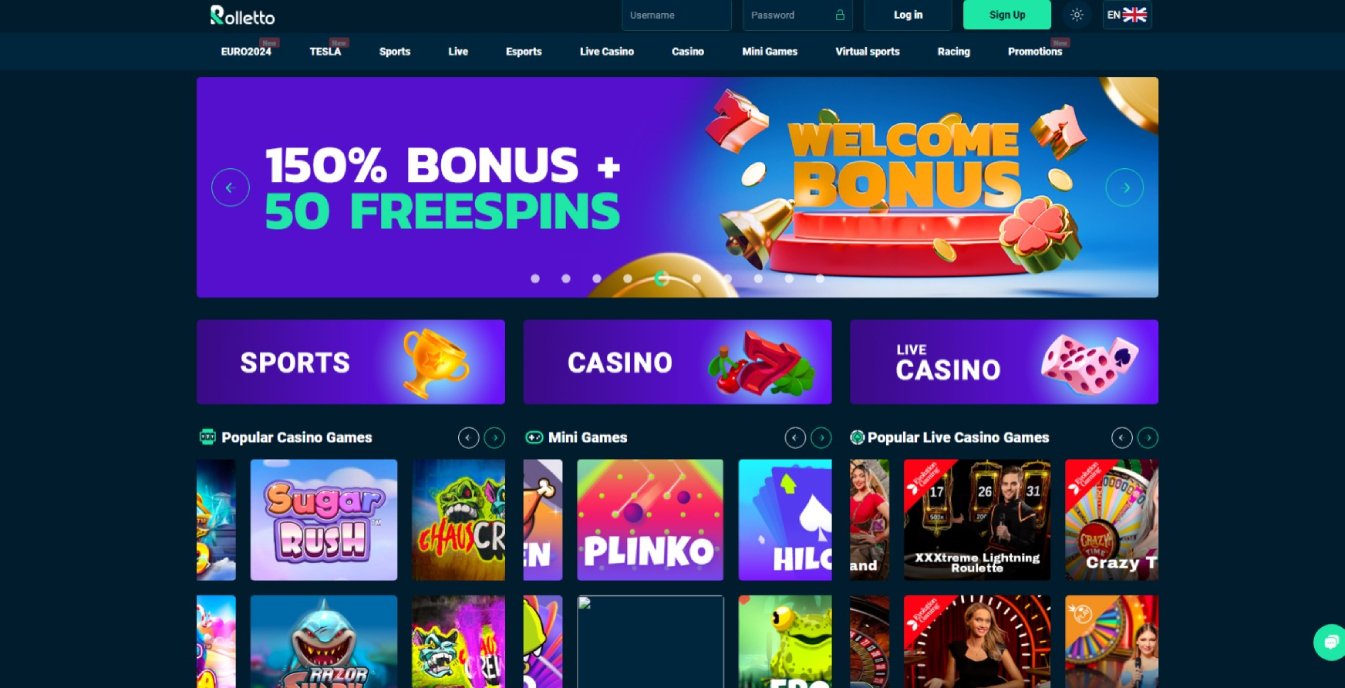 Rolletto Casino, owned by Santeda International B.V., is a premier online gaming platform renowned for its diverse gaming options and user-friendly interface. It offers an extensive selection of casino games, including slots, table games, live dealer experiences, and a robust sportsbook. Players can enjoy generous bonuses, such as welcome bonuses, crypto deposit bonuses, and weekend free spins.