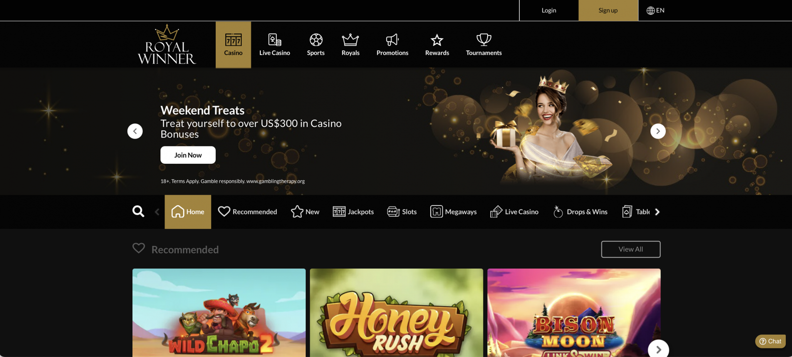 Royal Winner offers a diverse collection of high-quality casino games, including slots, table games, live casinos, and an immersive sportsbook section.