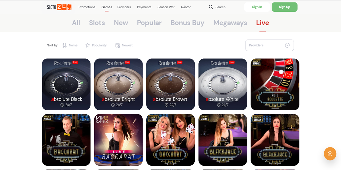The most realistic, life-like, and casino authentic gambling sessions of popular casino games can be found at Slotozen Live Casino. The live dealer games section consists of over 122+ titles from LuckyStreak, Evolution Gaming, ALG, and other top live games providers. Streaming in real-time in full HD, you will get to enjoy live dealer sessions with live croupiers interacting with the game’s elements right in front of your eyes, giving you the feeling as if you are at a real casino from the comfort of your couch!
