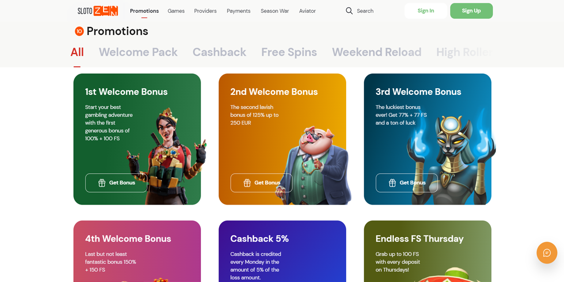 The promotions of Slotozen Casino don’t require any bonus codes! Just make a deposit according to the bonus terms, and your account will be credited instantly.