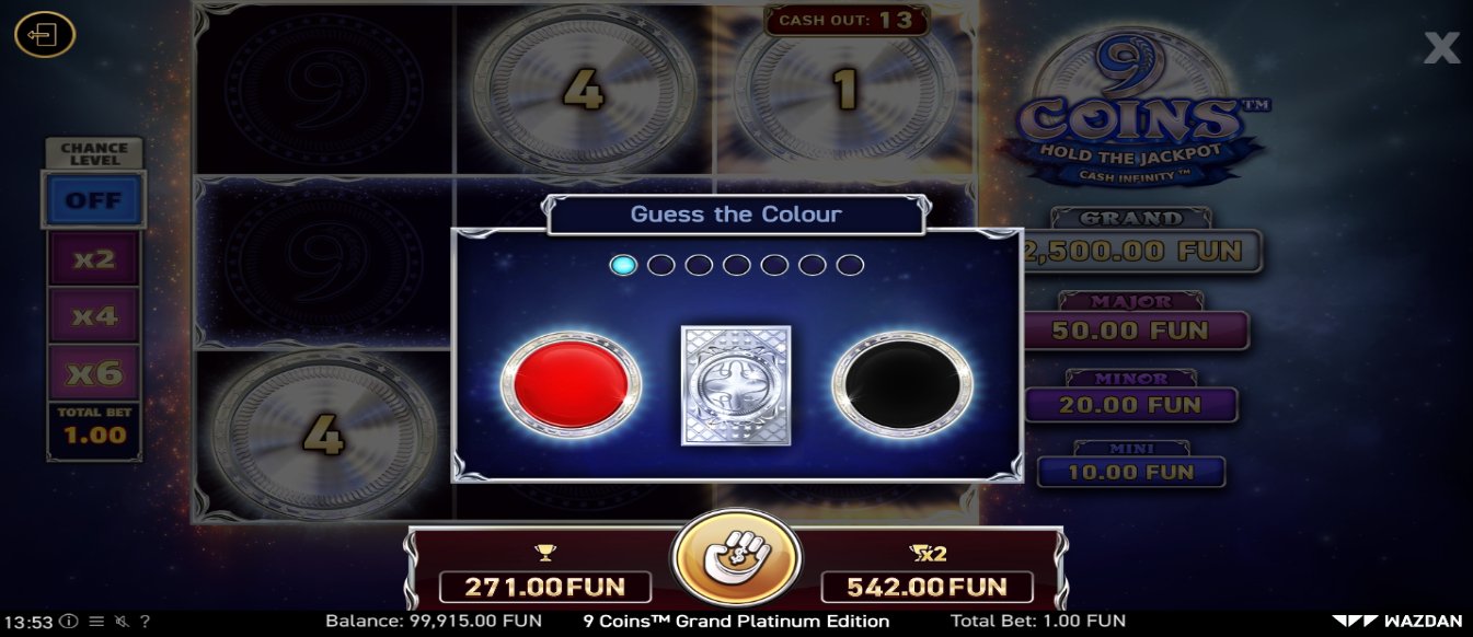 9 Coins™ Grand Platinum Edition is packed with exciting bonus features, including various Jackpot Bonus Games, Mystery symbols, and the thrilling Cash Infinity™. The Mystery symbols possess the ability to transform into any other bonus symbol, except for the Cash Infinity™. By landing three bonus symbols, players can unlock the highly rewarding Jackpot Bonus Game, even with a single payline.