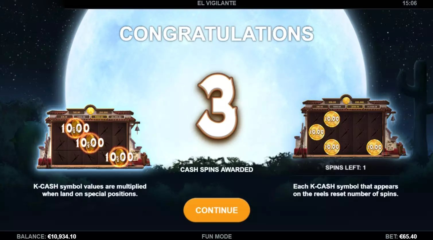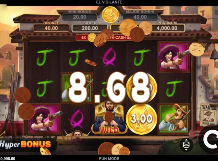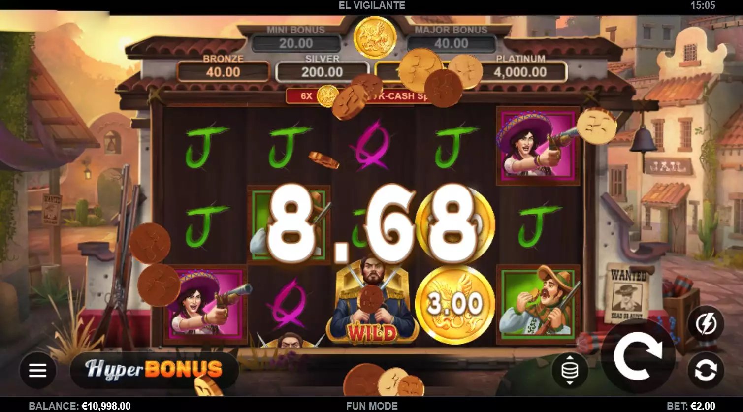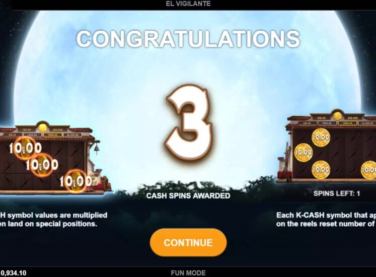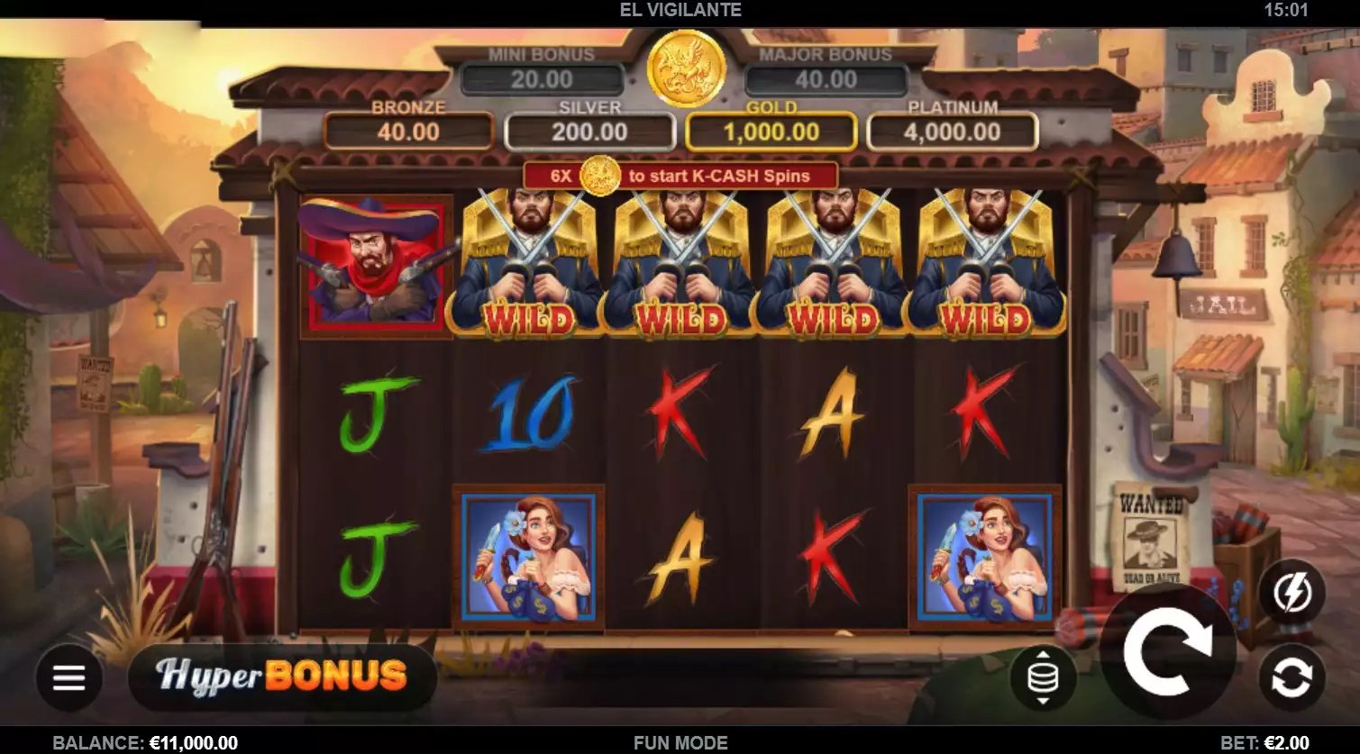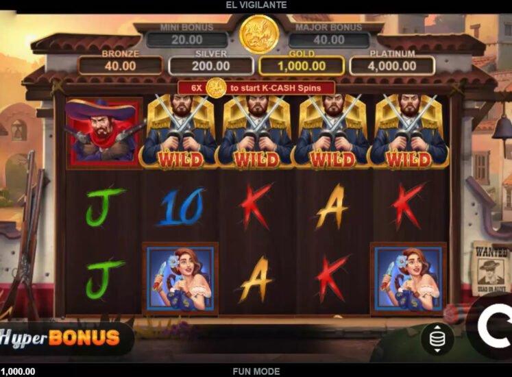 Finally, we have come to the best and most thrilling part – bonuses and free spins! It is not a secret to anyone that we all love bonuses because we all love being rewarded for our patience, strategies and spent time on a certain game. Well, when playing El Vigilante slot you should may attention to specific things in order to get to enjoy the following bonuses and free spins. First of all, as we mentioned above in the article, if you collect 6 or more K-Cash Symbols you trigger 3 K-Cash Spins and if you hit 3 or more Bonus Symbols, you trigger 8 Free Spins in the base game! There are many possibilities for you to win – Cash prizes attached to K-Cash Spins symbols, 4 levels of Cashpots or two types of Bonus! Keep in mind that Cash and Cashpot prizes can be multiplied by sticky multipliers visible on the reels. Fasten your seatbelts because we are telling you that this slot also provides you with a Hyperbonus! get straight to the point and play either Free Spins or K-Cash Spins immediately. This is said to be a classic feature of the software developer called Kalamba Games.