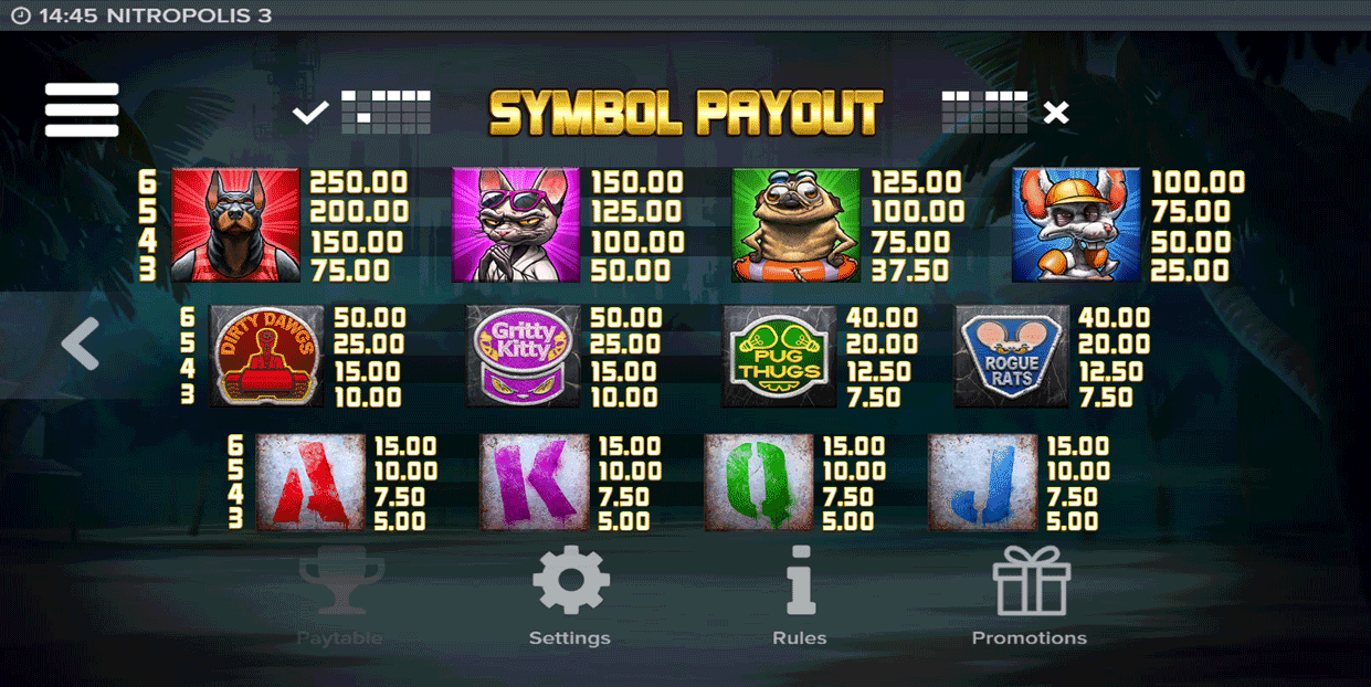 Nitropolis 3 Online Slot Paytable