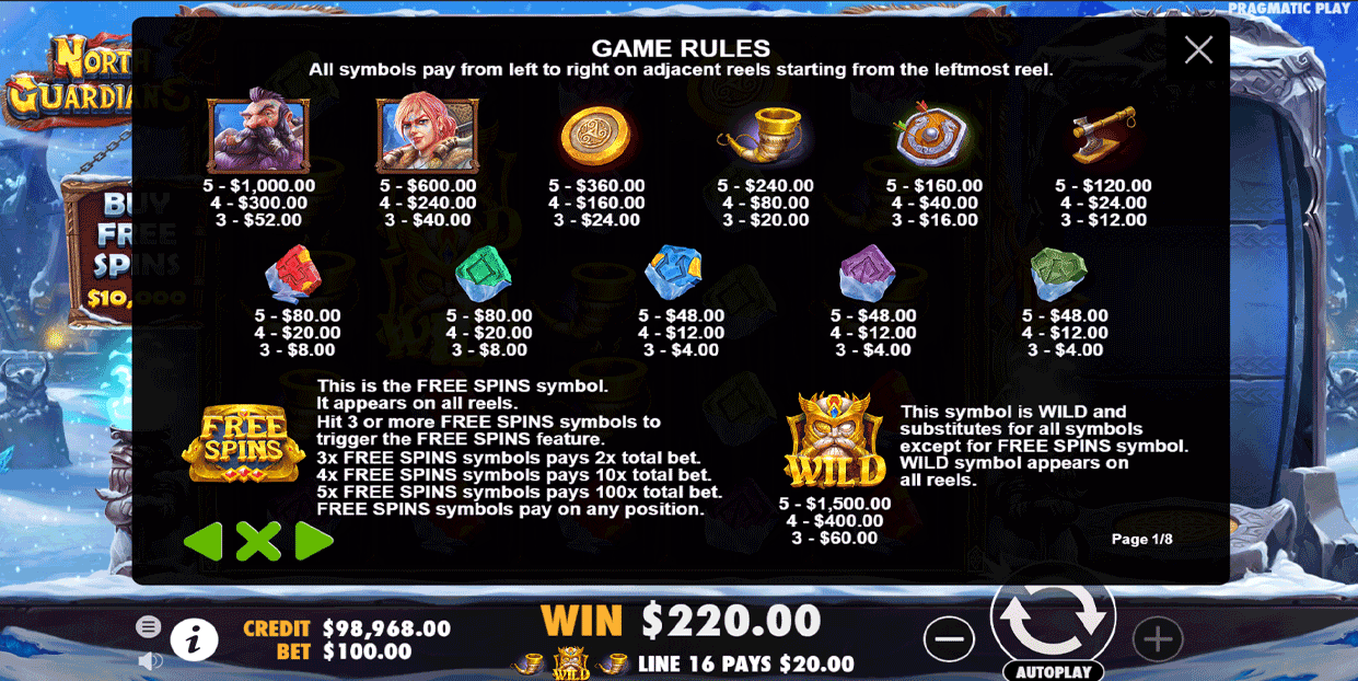 North Guardians Online Slot Paytable
