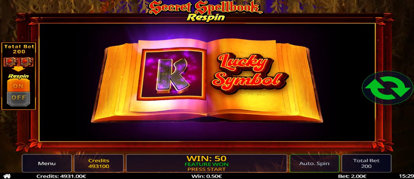 Gambling on Secret Spellbook Respin can result in a €50,000 maximum win!
