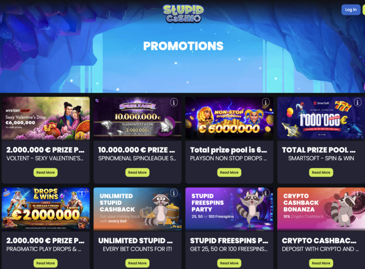 Stupid Casino takes player rewards to the next level with its generous and dynamic bonus program, designed to enhance the overall gaming experience. While specific promotions may evolve over time, players can typically expect an exciting lineup of offers, including lucrative welcome bonuses for newcomers, reload bonuses that keep the thrill going for existing players, and exclusive promotions tied to featured games or seasonal events. These bonuses come with competitive terms, often featuring fair wagering requirements that make them more accessible and rewarding.