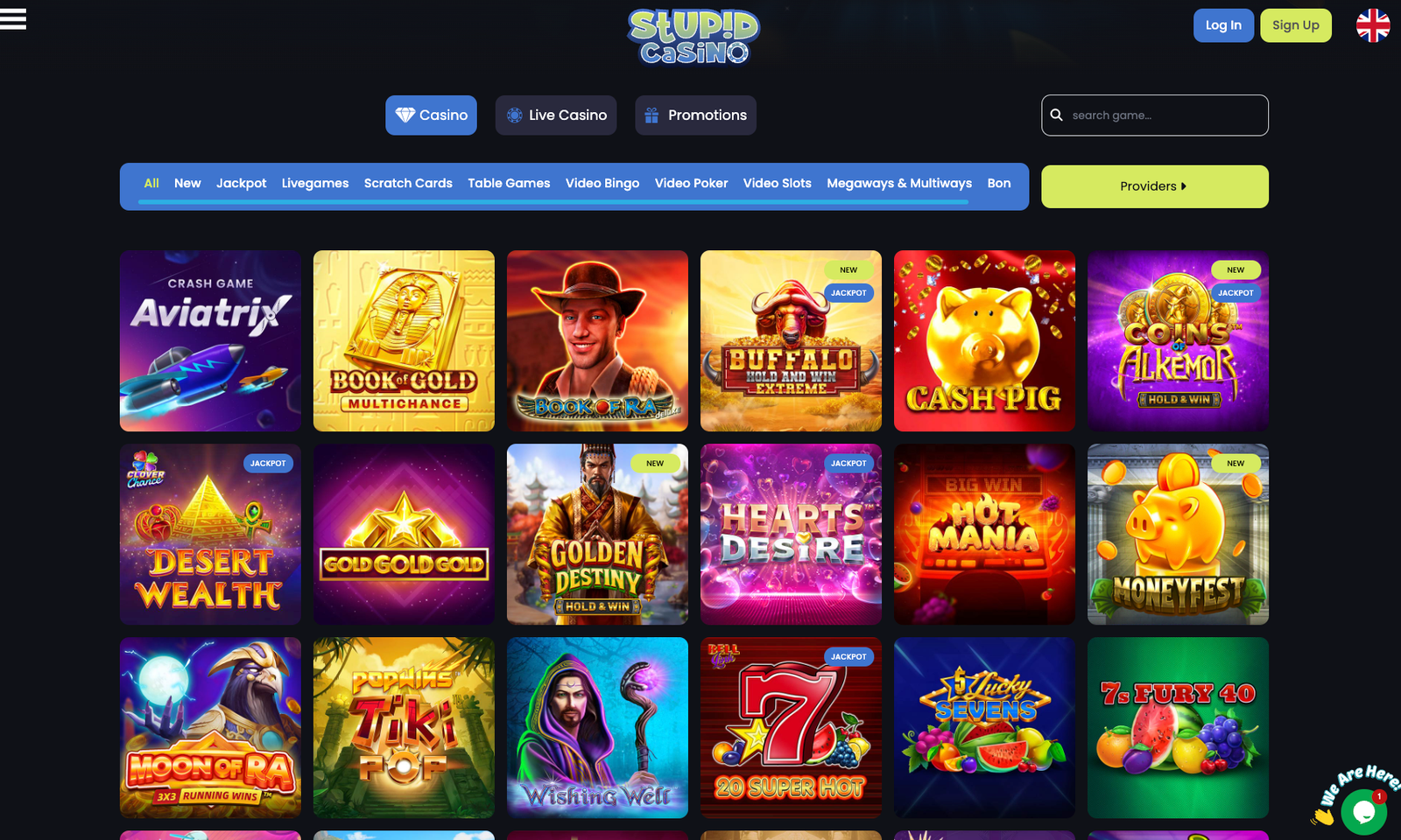 Stupid Casino boasts a vast and diverse game library that caters to players of all tastes and preferences, ensuring an exciting and immersive gaming experience. Slot enthusiasts are in for a treat, with an extensive selection ranging from classic slots to feature-packed video slots, as well as the ever-popular Megaways and Multiways titles that offer countless ways to win. Those who prefer the strategic thrill of table games can dive into classics like blackjack, roulette, and baccarat, while instant-win lovers can enjoy a variety of scratch cards for quick and exciting gameplay.