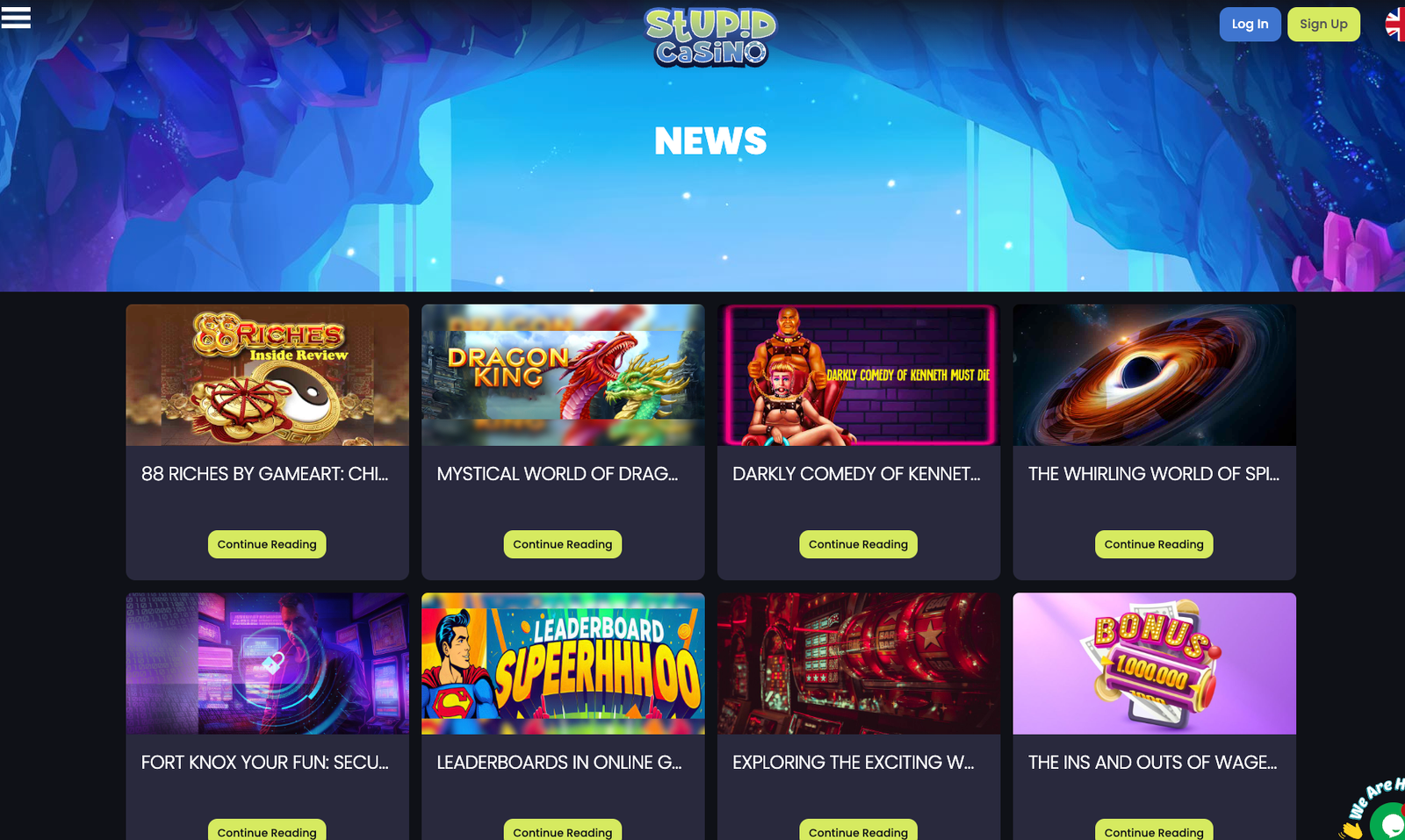 Stupid Casino delivers a modern and feature-rich gaming experience, offering multi-language support, cryptocurrency payments, and a generous bonus system—including a standout wager-free welcome bonus. While the casino operates under a Curacao license, players are encouraged to review the Terms and Conditions thoroughly to familiarize themselves with policies related to withdrawals, verification procedures, and responsible gaming practices. The casino’s immersive live casino section, partnerships with renowned software providers, and dedicated player support contribute to a high-quality gaming experience. As with any online casino, responsible gaming is key, and players are advised to stay informed and set limits to ensure a safe and enjoyable gambling experience.