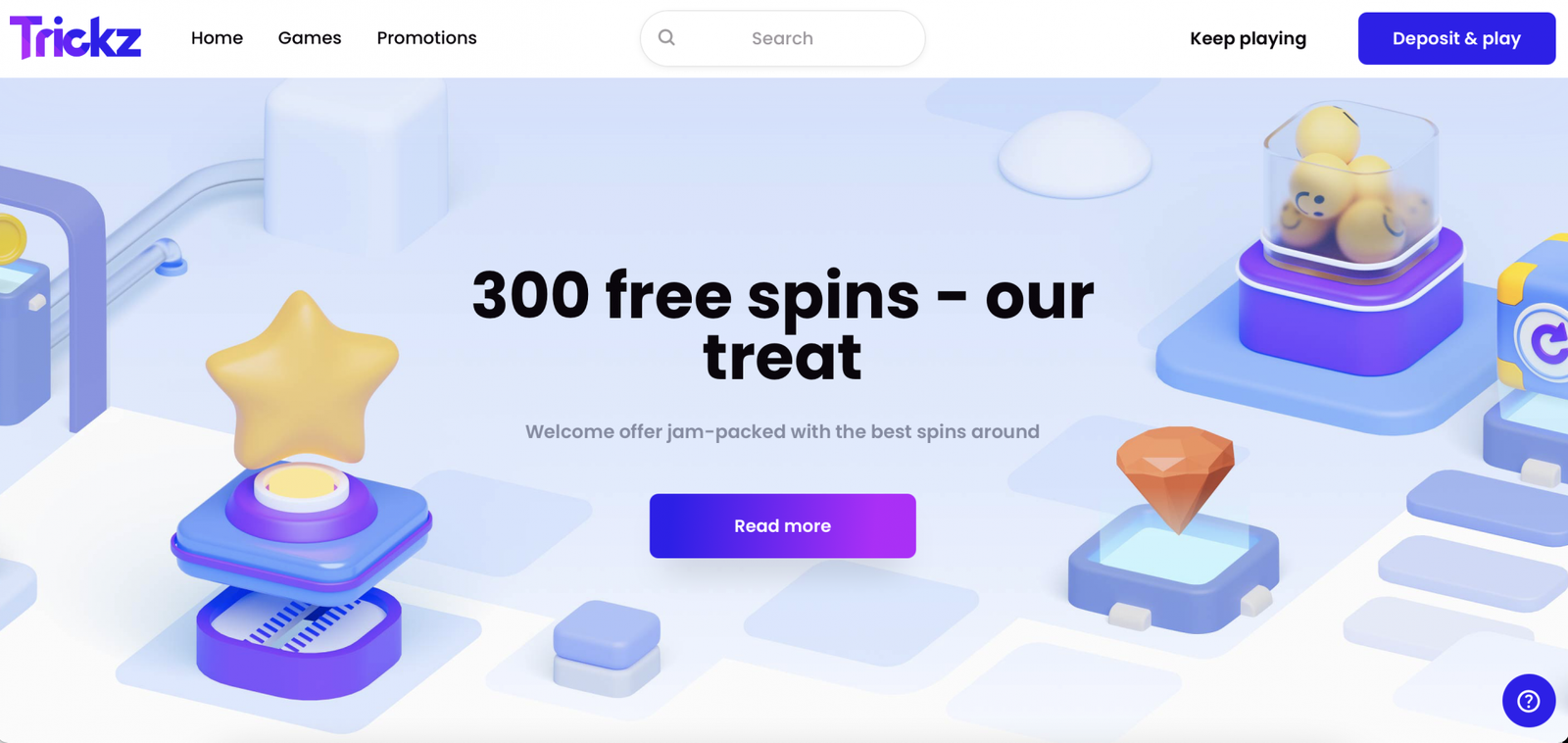 The welcome bonus at Trickz Casino currently is 300 Free Spins for your first two deposited amounts at the venue.