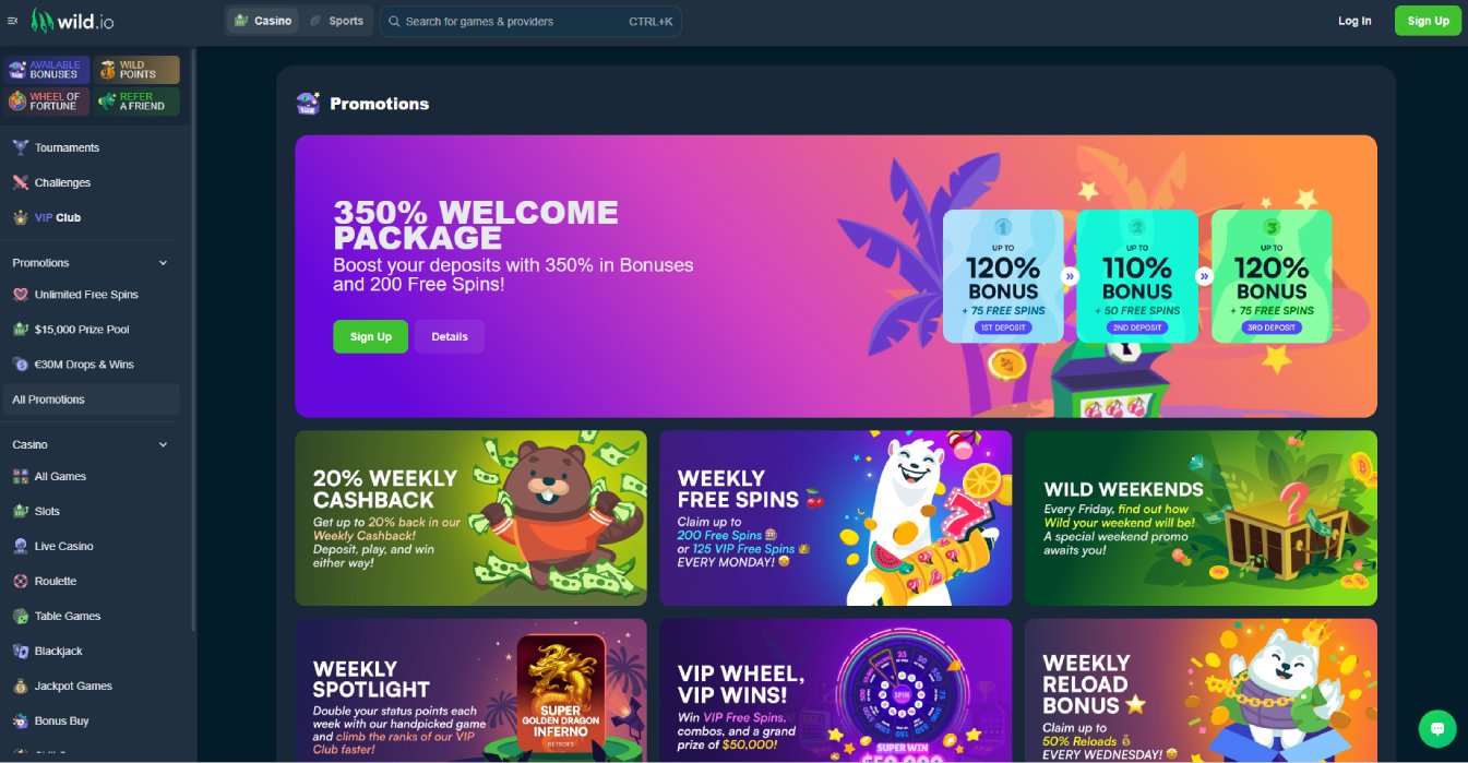 Wild.io Casino boasts a diverse array of gaming options. From classic slots with exciting themes to thrilling table games like blackjack and roulette, there’s something for everyone. Additionally, the live casino section offers an authentic gaming experience with live dealers hosting games like blackjack and roulette in real-time.